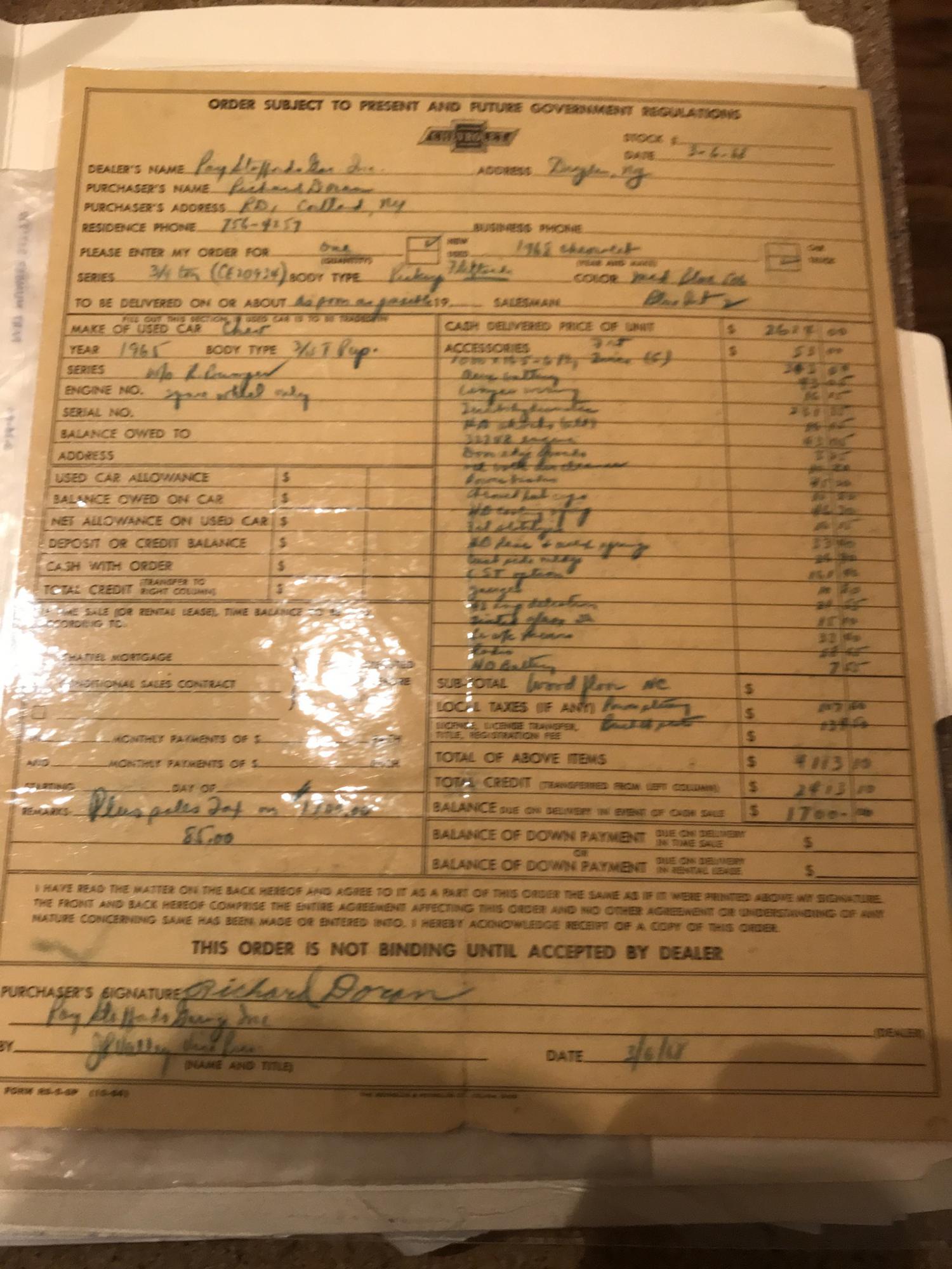 On March 6,1968 Mr.R.Doran walked into Ray Stanford’s Garage Chevrolet Co and ordered his new C20. Loaded with 23 Factory options and today showing just 22K