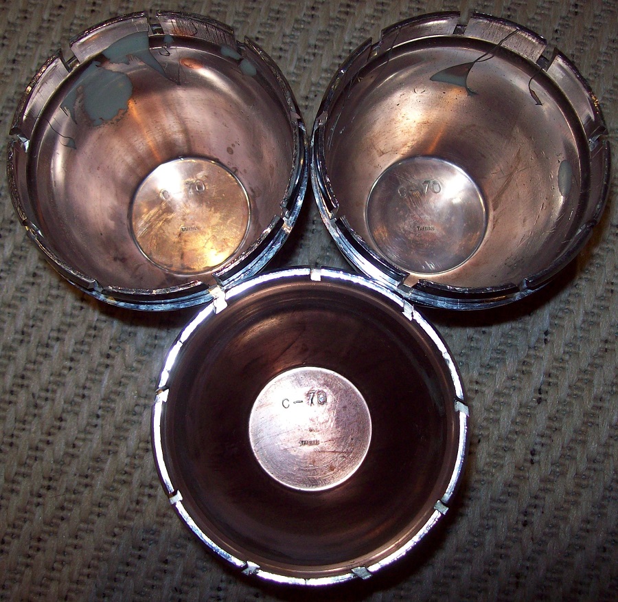Three Embossed Top Centerline C-70 Taiwan 90's Wheel Caps .