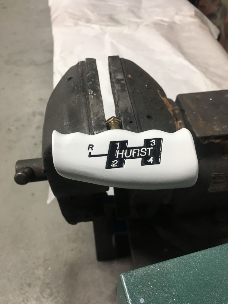 Facebook group Vintage Moroso, Mr. Gasket & Performance Equipment Aficionados. There are several guys on there that have Hurst T handles. I've seen several white ones.