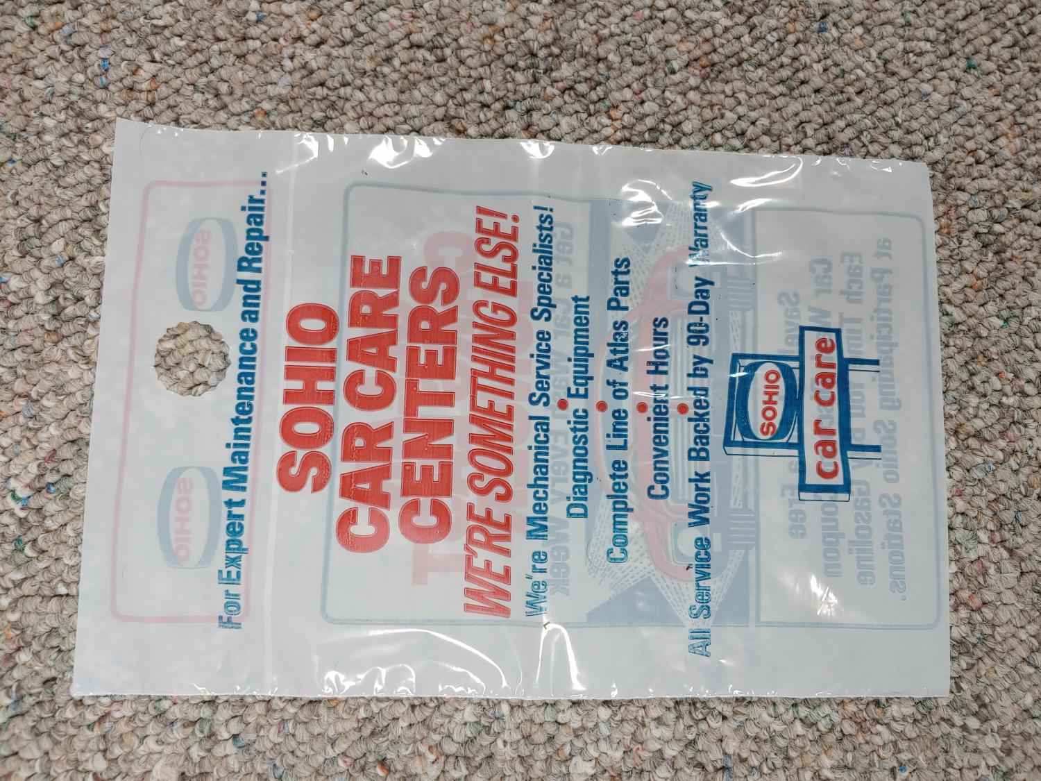 Cool NOS SOHIO Car Care Center litter bag. Great display item for your classic car.
