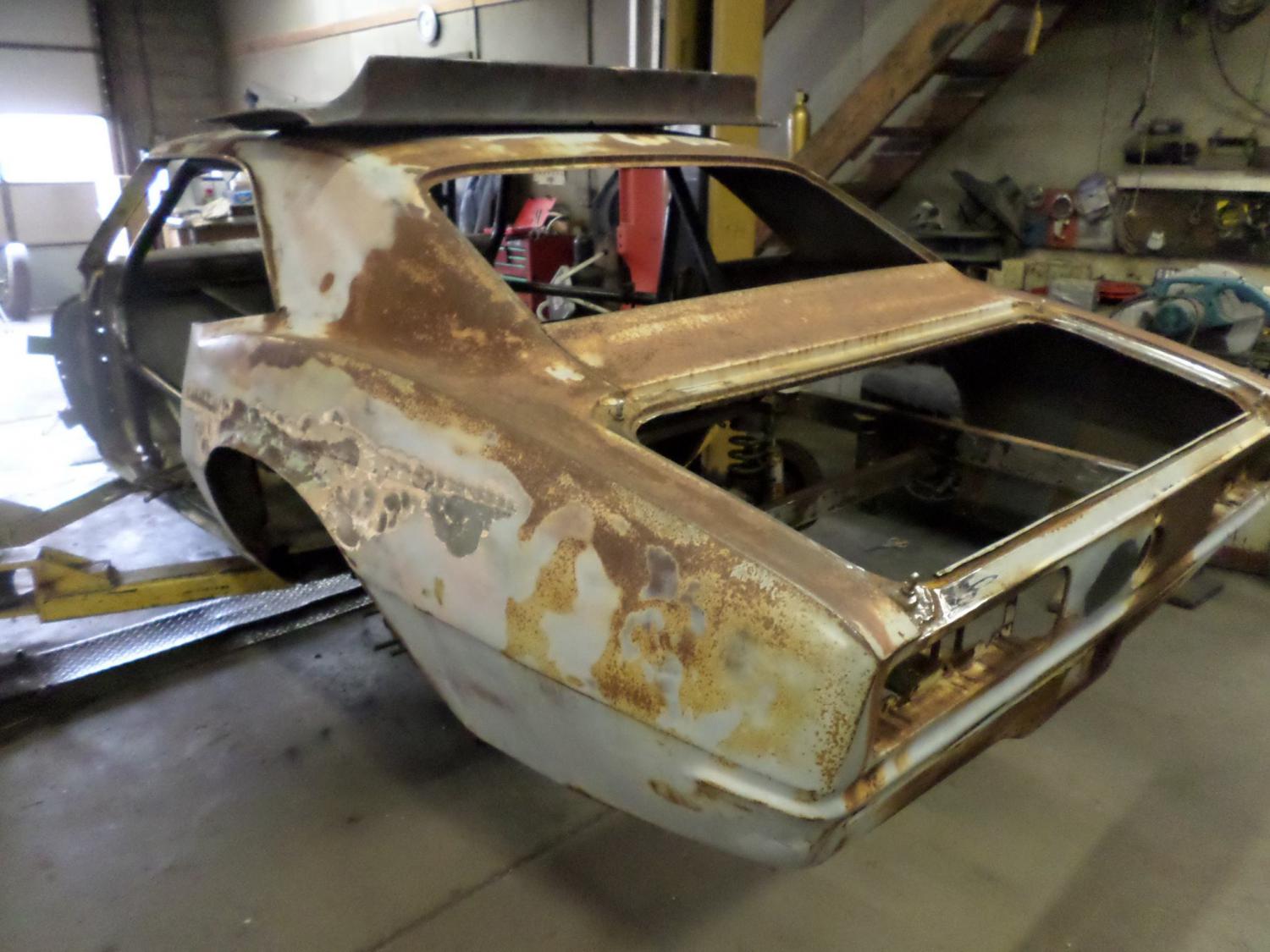 Dave Libby, (deceased) who was a Dick Harrell employee, told me he didn't believe Craig actually had the car, because Craig would never let anybody inspect it. I knew it was true, however, as my friend Bill Porterfield had seen the car. Craig was actually concerned if the cars location was known, it might be stolen, due to its incredible history. He kept the cars' major components in several private locations to minimize the possibility of this occurring. I met Craig in 2002 in LaHarpe, when he was visiting for the Fred Gibb Memorial car show. He showed me the rear deck lid off this car. He was on his way to visit Don Hardy to discuss the car, and its history. Don Hardy died on November 30, 2020. I'm glad he was able to restore and own Dick's car. He always wanted one of his original Camaro's as he did not have that opportunity when the 1967 Kelly Chadwick Camaro (his 1st) was restored. 1st picture is the Dick Harrell car, when in Don's shop being restored. The 2nd is of Don's 1st Camaro, owned by Kelly Chadwick, when it was borrowed by Dick, before his car was finished. The 3rd is of the main body/chassis of Dick's '67 when Don received it. I recognize the deck lid, sitting on the roof of the car. |