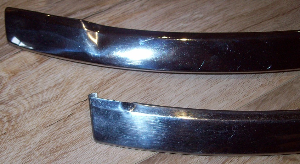 The shorter, bottom piece, appears to be for a convertible, as they end at and lock on the side trim and a wider surround goes beside that.