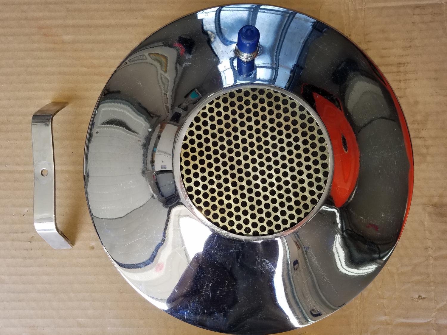 Vintage impossible to find Flys Eye style air cleaner. All parts are in like new condition. Chrome plating is good on the base but there is a small dent. Just like what was installed on the Baldwin Motion cars. All 6 pieces included. There is one on E bay now for $650.