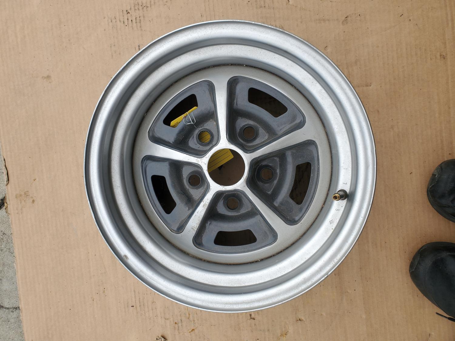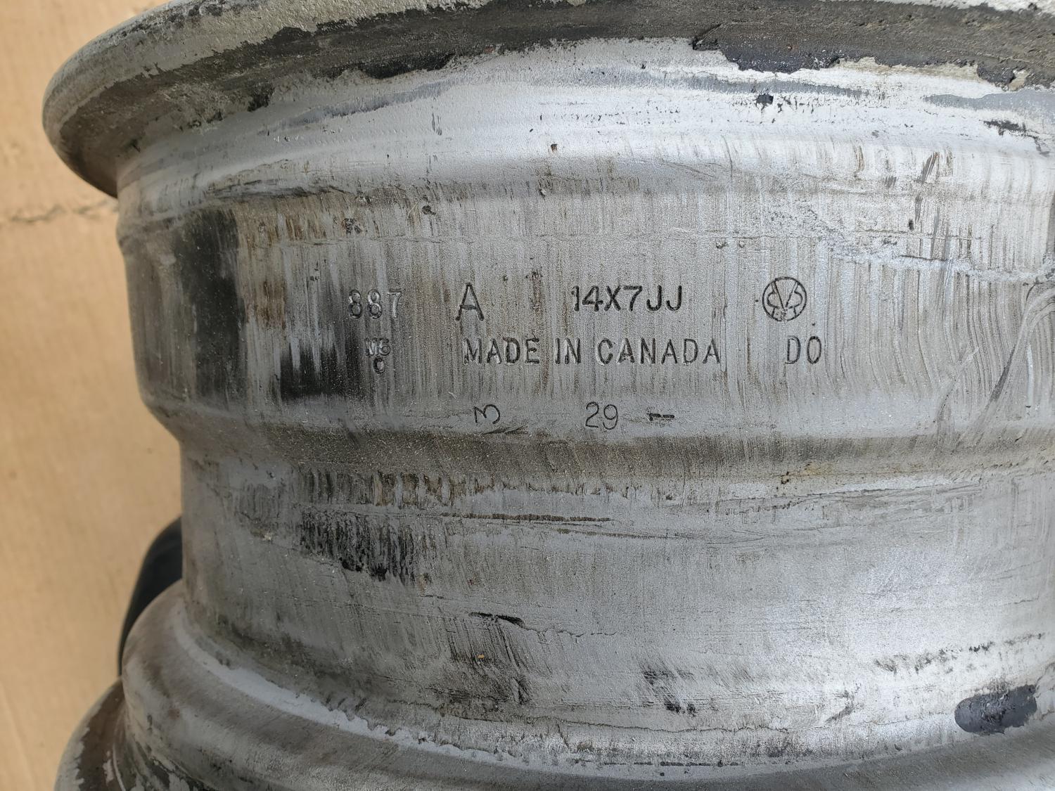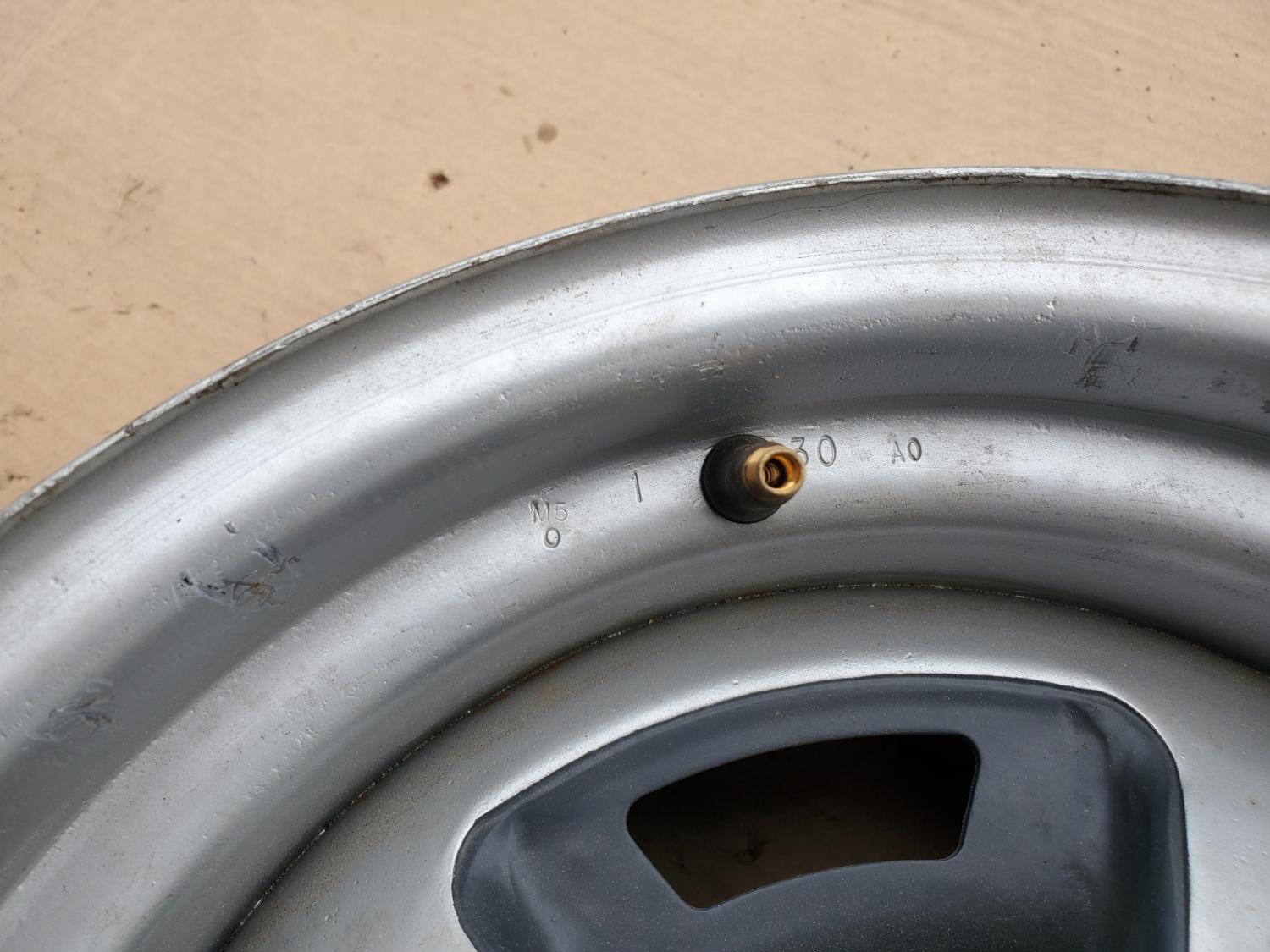 1970 AO 14X7 wheel dated 1 30 AO (sold) I have one I am not sure what code it is. The rim that is left is the last one on the pictures. It will need painted and cleaned up. Will sell for $50 and shipping. Questions 330-770-2517.