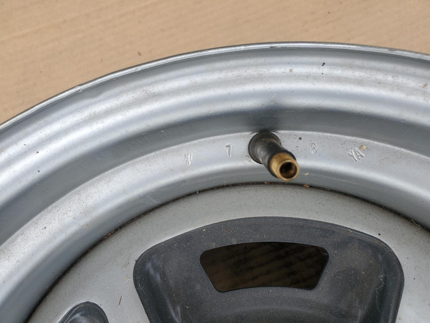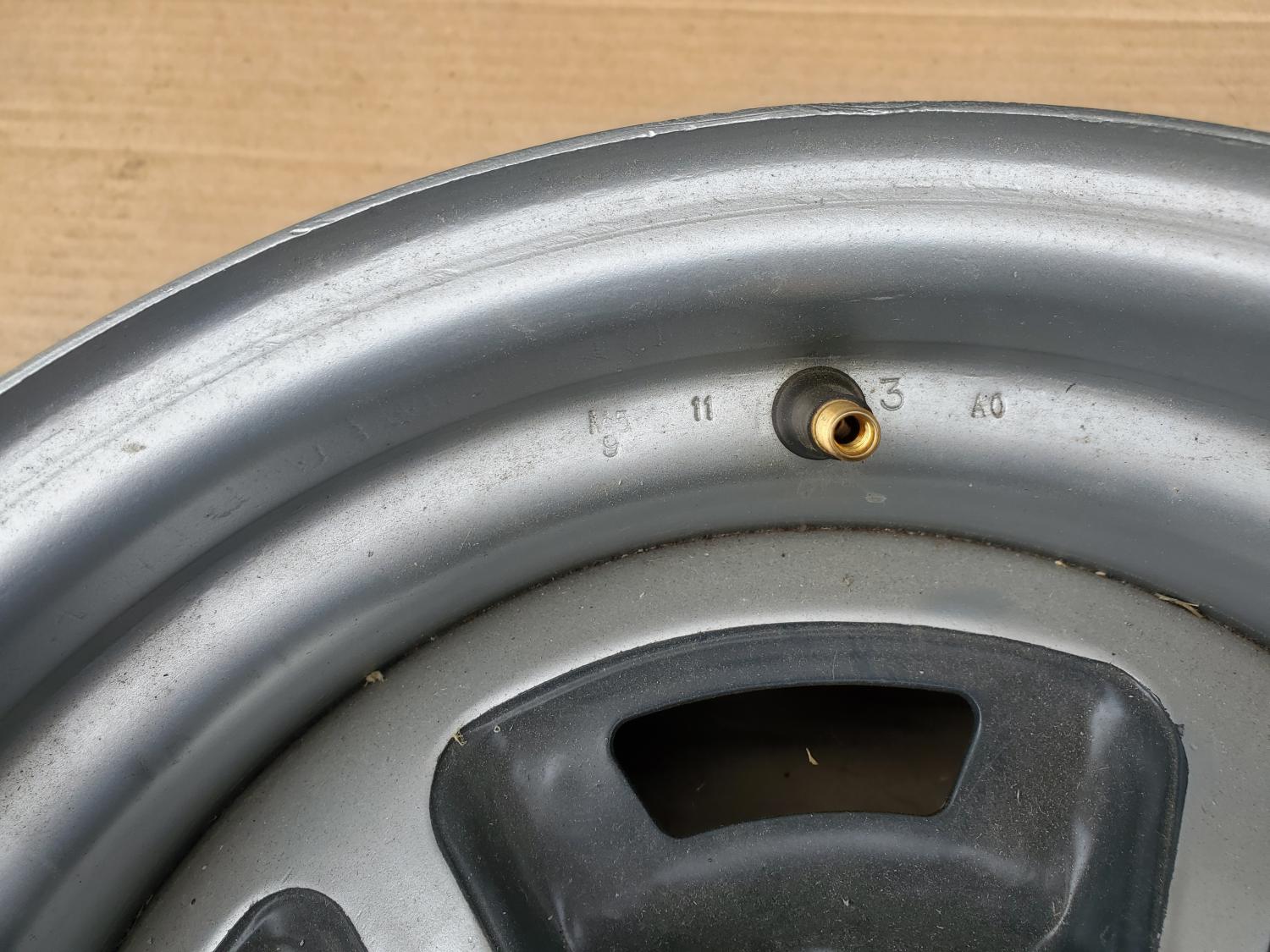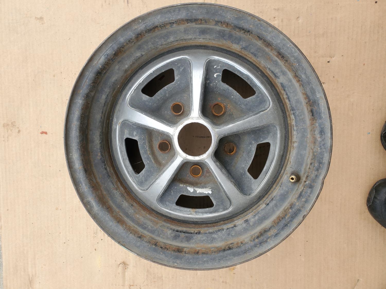 1970 AO 14X7 wheel dated 1 30 AO (sold) I have one I am not sure what code it is. The rim that is left is the last one on the pictures. It will need painted and cleaned up. Will sell for $50 and shipping. Questions 330-770-2517.
