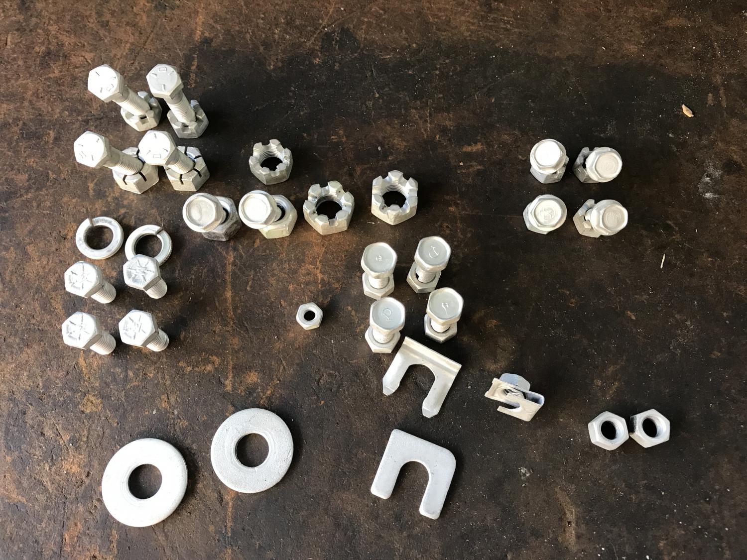 end link hardware - bolts and washers (two sizes) and two correct nuts and sleeves - one pair mushroomed a bit and one pair of bolts grooved from being loose I think. $20