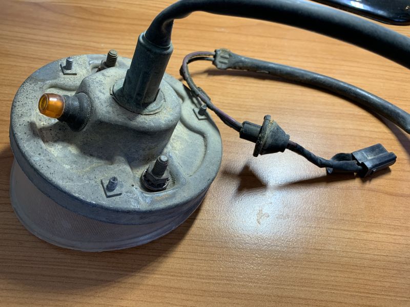 RPO U18 export metric speedometer for 1969 Camaro - 200 kph. RPO U46 light monitoring system front park/turn light (one only). Has lamp wiring and connector as shown, no fiber wiring. Both unrestored as shown. I have never seen either of these items offered for sale anywhere, so really hard to get an idea of fair value. Hoping the experienced members here can offer some insight. Thanks, Tim