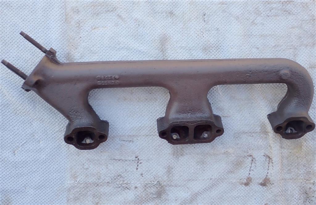 This manifold is in good original condition overall. The casting number and date are easy to read. There is some scattered pitting as shown. All three pipe mounting studs are intact. There is a split through one of the pipe threads as shown. The stud is solid and the manifold was being used this way. This is a nice original manifold with a very hard to find casting date.