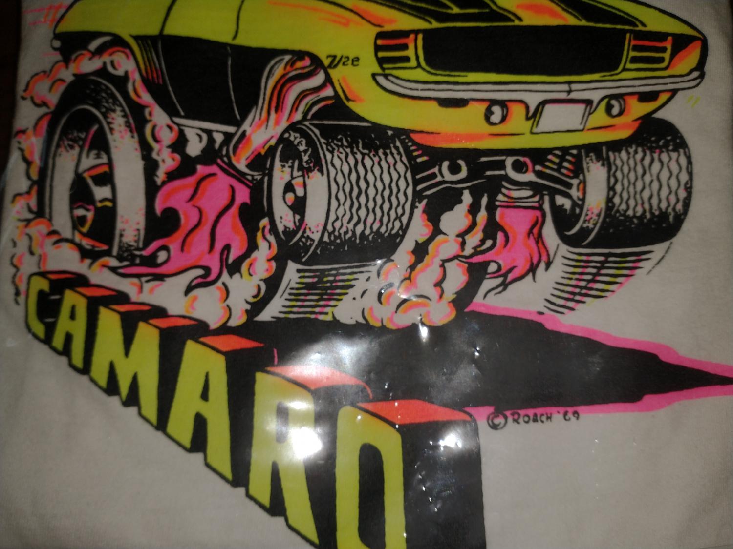 Original '69 ROACH STUDIOS (Southern Ca.) '69 Z/28 Original n.o.s. Transfer on newer Hanes Beefy Tee. Size Lg. (Lightly Used) Nice, Clean, Perfect Vibrant. Colors. Wear it, display it, gift it. Definitely One of a Kind still in existence. Found numerous Roach Transfers years ago .... Had a few made up as gifts. This was lightly worn, laundered twice. . $75 shipped low 48. Canada Australia Sweden UK Europe cost + $15 PayPal family and friends. [email protected]