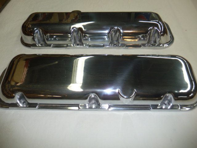 These stock height valve cover are made in the USA. New never bin used and will clear the power brake booster .Over stock from B&B Performance. Have over 30 sets !!! $55.00 a set plus shipping. Discount on multiple set orders thanks Joe