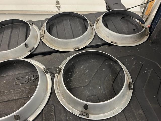 I have seven early take-off 14x7 four clip trim rings. They are in nice shape but all have small imperfections. None of them have curb rash. If you need more specific pictures let me know. $350.00 shipped, Paypal F&F. Thanks!