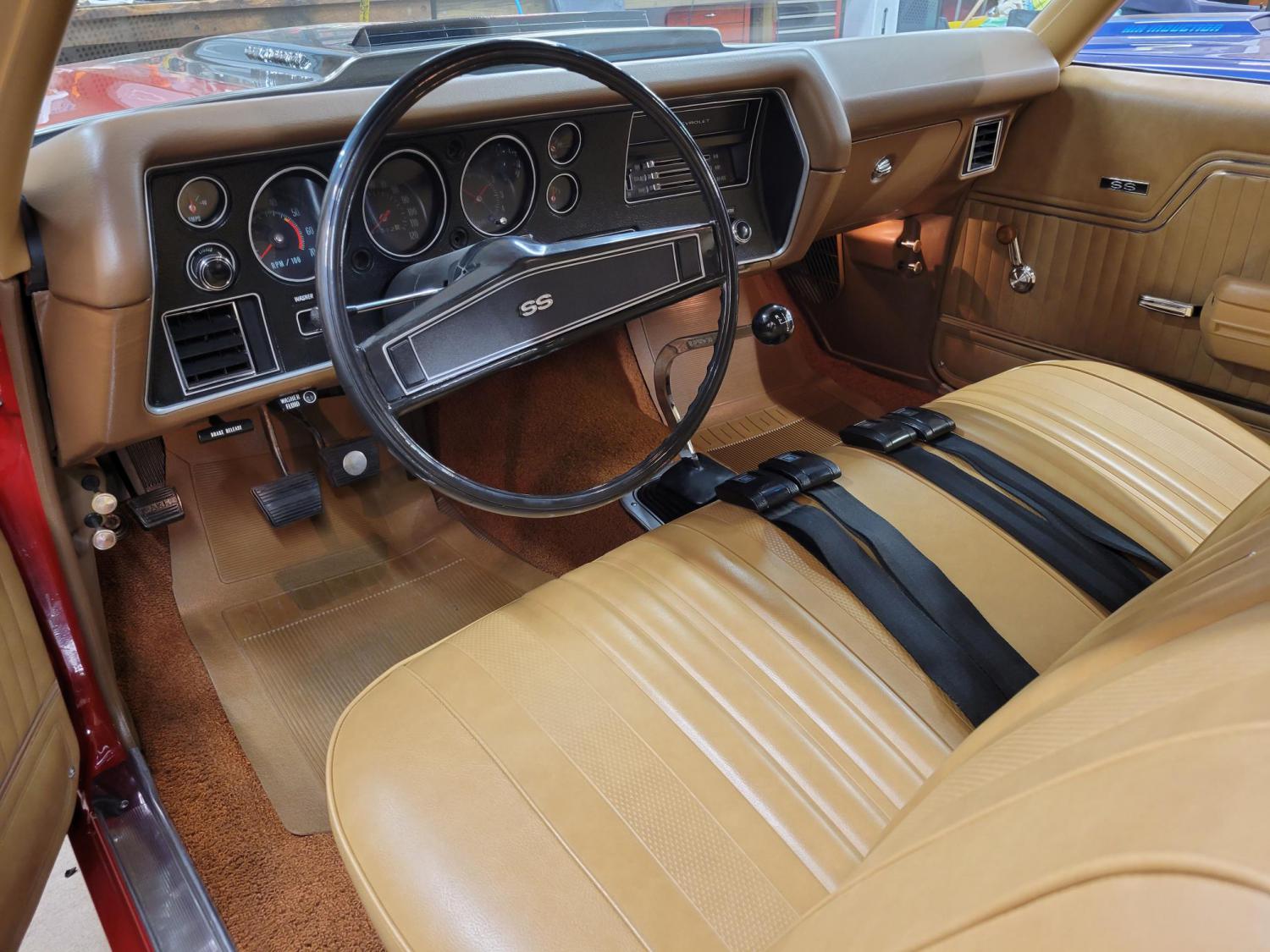Well here are a few pictures of my new pride and joy. Several of you probably figured it out in September but this is the car I finally purchased after two and a half years of looking for a Cranberry Red LS5/M22 1970 Chevelle that met all the criteria I was looking for, a documented, born with drivetrain car, with complete ownership history to fill the void of the first car I ever bought back in May of 1987. My first Chevelle was a red L34/M20 car that needed everything but over the years I decided a LS5 would be the perfect Chevelle for me since they were half the price of a LS6, still had a M22 and a were little rarer. I started seriously looking for a Chevelle in May of 2019 after I found a black LS5/M22 survivor in Atlantic, IA with 21k miles that I passed on that my buddy Mark ended up buying. Looking back I should have bought the black car but I didn’t have the space for it at the time but it lit a fire in me to start looking for a Cranberry Red or Shadow Gray to replace my first Chevelle. I started looking online every day and quickly realized finding a documented car with the original drivetrain would be a lot harder than I first thought since most were clones, restamps or had fake build sheets. In May of 2020 my girlfriend and I sold our 69 COPO Camaro so I finally had the space for a car but still wasn’t having any luck finding one so I finally put a want ad on the Yenko site looking for one. In February of 2021 a Shadow Gray LS5 popped up on the Minneapolis Craiglist so I drove up and looked at it that night. It had the nicest build sheet and window sticker that I’d ever seen but had some poor trunk, floor and quarter panel repairs I didn’t want to deal with so I passed on it and kicked myself all the way home figuring the next person to come look at it would probably buy it( they did the next day). Around this time my buddy Mark sent me the link to the thread of the red LS5 69L78 found back in 2013 and posted about here on the Yenko site. While looking through the thread I noticed a post by SS4REAL about his LS5 Chevelle so I sent him a message asking if he knew of any others like his. He didn’t but we agreed to stay in touch and over the next several month’s I kept Jim in the loop about how my search was going and found out he had just as much trouble finding his car back in 1998. In late August a friend give me a lead about a red LS6 Chevelle project with the original engine that was missing the original transmission and rear end. Waiting to hear back from the owner to find out if the carb and distributor were original(they weren’t) I found out the car had been sold 4 minutes earlier. The next day I emailed Jim and let him know about my good luck and he told me for the price of the project car he’d sell me his LS5. Since I really wanted an LS5 anyway and knew I wouldn’t be able to afford restoring the LS6 until I retired I went ahead and pulled the trigger on this car. A few days later Jim set me up with Jim from Enclosed Muscle Transport and three days later the car arrived here in Iowa. All I’ve done to the car so far is install an original looking shifter handle and knob on the Hurst shifter and purchase a dated carb, starter and water pump for it to get it as original as possible eventually. Last week the new F70/14 Goodyear Polyglas tires I bought from Rusty arrived so my son and I put the original wheels back on it and I’m thrilled with the stance of the car. The new personalized license plates for it showed up for it yesterday, while I was devastated that SS4REAL plates were already taken here in Iowa I was pretty happy that I was able to get 70SS454 by putting a O in the form instead of 0, especially since the zero in IA has a / through it. While I was originally hoping to find a car with black interior, since we put the Goodyear tires and original wheels back on it I’m really falling for the saddle interior and couldn’t be happier with the car. Sorry for the book but since I bored everyone about my search in my want ad for the last year and a half I wanted to update those who cared to read about it and to thank Jim for being such a great guy to deal with and tip my hat to him for taking such great care of the car for the last 23 years.