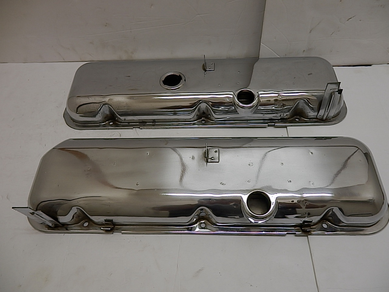 These are all original flash chrome valve covers with dripper's, I am not selling for less than the Crane reproductions. These are getting harder to find in nice condition, I have over 30 valve cover's in various condition, & I try to match them according to condition. I do buy single valve covers to add to my collection. I added a pair of 1969 Chevelle & Corvette.