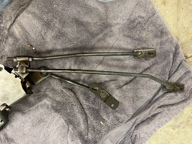 1969 Camaro Muncie shifter with rods. The rods are for a small block application. One of the rubbers where the rods attach is missing a small piece. The back side of the 1-2 and 3-4 tabs also have a nick out of them like they weren't tight at one time. No mounting hardware, bracket or shift ball. August of 1968 date. $595.00 shipped. Paypal F&F.