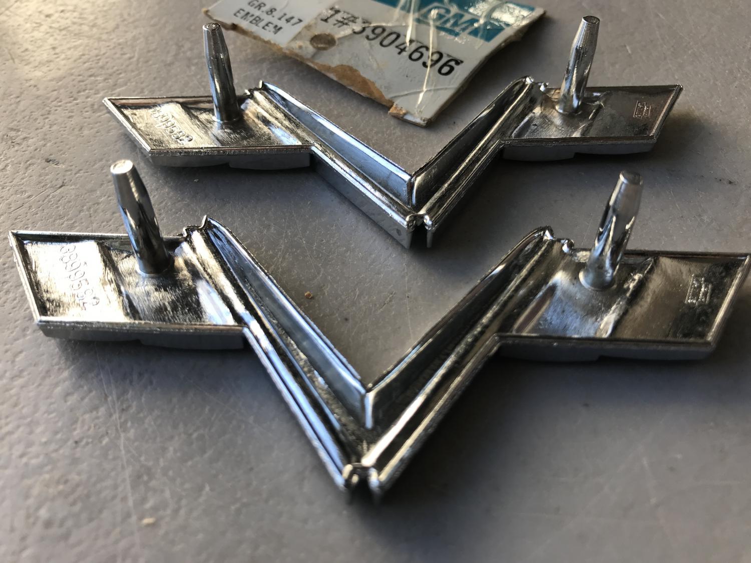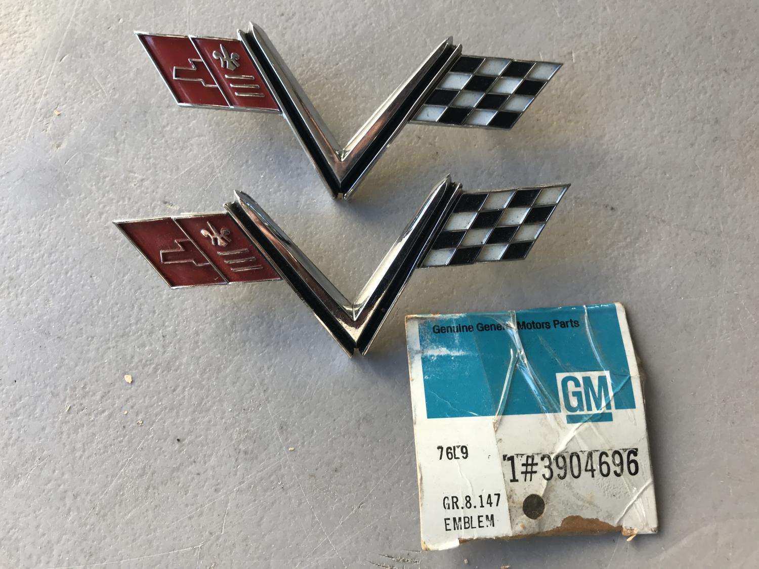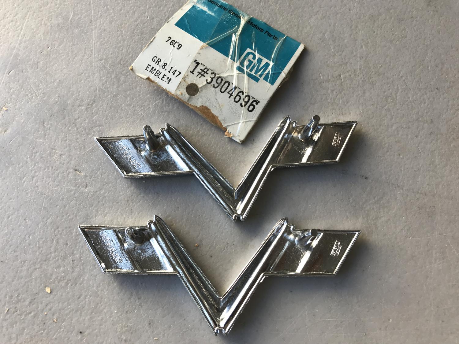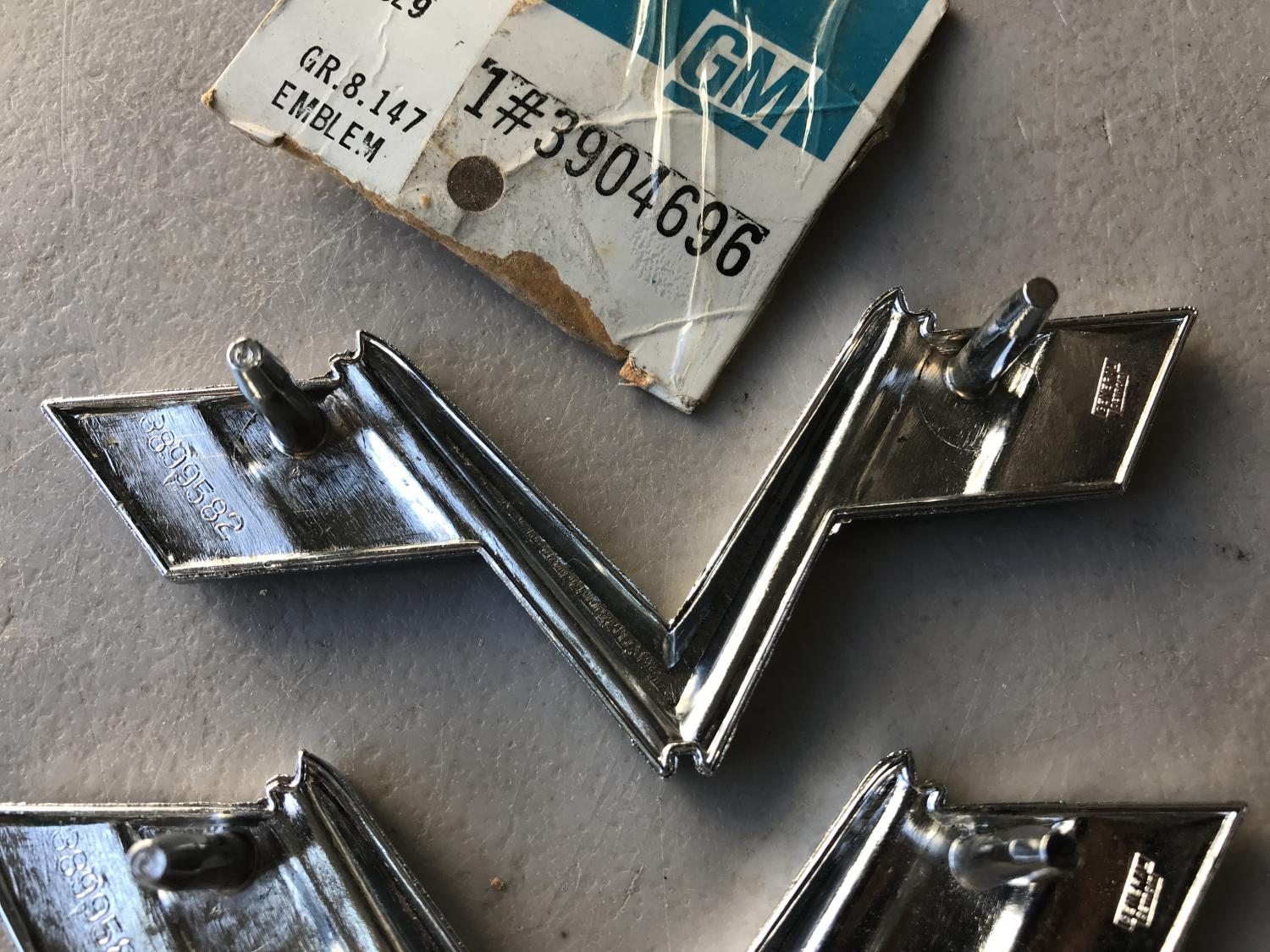 All that's left of the boxes is one lid with the part number 3904696 But each emblem is definitely genuine with the casting number 3899582 No cut nuts, and tabs never threaded - new. $70 PPFF shipped & insured to the 48. Thanks friends, Anthony Last edited by AnthonyS; 08-24-2021 at 03:14 AM. Reason: reduce the price |