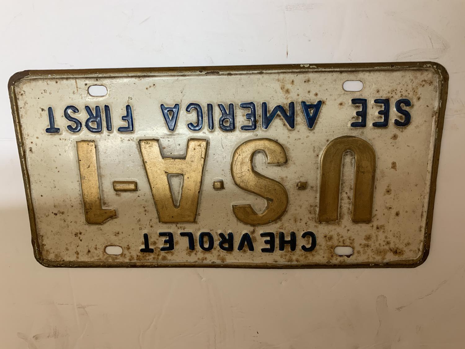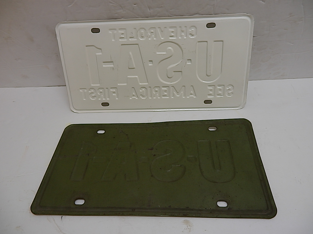 $300 + shipping The 2nd plate is I believe pre 1965 "See America First", I have never seen another one like it in all my years other than repro's. It was in poor condition when I found it so I had it restored, it is a heavy embossed plate. I also include a pic in as found condition. $350 + shipping The 3rd plate is one I had made for on my former 1969 L72 Impala. The plate itself is an original heavy gauge with raised embossed outside edge which is painted black. I had a sign company make a template & the Chevrolet letters are painted on not a sticker. I wanted a plate that was on the cover of the 69 Chevrolet sales brochure. $100 + shipping |