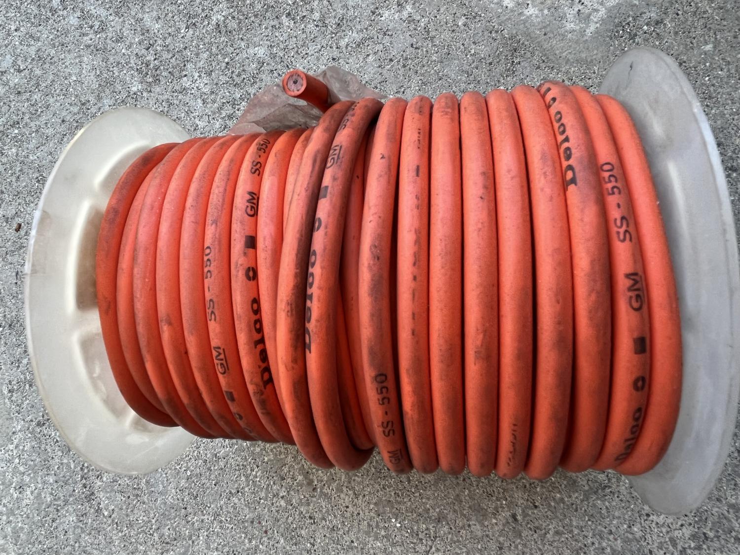 SUPER RARE treat available today. This is a partial roll of original Delco SS550 / SS-550 7mm stainless bulk HiPo RACE spark plug / ignition wire. This is the correct, old school version of these wires / this wire as evidenced by the font of "DELCO" and that they are UNDATED. This is what you want for a truly original "DAY 2" look; this is what was available when these cars were still new. L88 Again, this is a partial (originally 100') roll and there was likely one set of wires made from it back in the day. I don't want to unroll the spool as the wire is original and intact. So, Mrs. Anthony knows math and told me a formula to use to estimate total length: 2ΠrxNxD r = radius of roll N = number of loops per length D = number of layers of loops I'm calculating 20 loops on the roll and 6 separate layers of loops even though it looks like there's seven on the spool, to be conservative and err on the low side: And I'm rounding pi to 3.14 of course, and varying the radius for each layer of loop rather than keep that constant, so: 2x3.14x.75"x20 = 94.2" 2x3.14x1.00"x20 = 125.6" 2x3.14x1.25"x20 = 157.0" 2x3.14x1.50"x20 = 188.4" 2x3.14x1.75"x20 = 219.8" 2x3.14x2.00"x20 = 251.2" = 1036.20" / 12 = 86.35' The above is an (educated) ESTIMATE, but I will bet there's at least 80' on this roll and will warrant that number. Enough to do at least three BBC cars conservatively and maybe even four motors, especially if you're doing a SBC engine as well. $1000 PPG shipped in the US. Cheers all, Anthony |