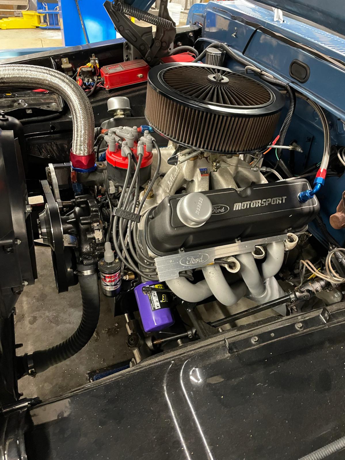 The engine is a 427 in.Windsor stroker with the best of parts, forged rotating assembly, roller cam, trick flow aluminum heads up with Manley valves and components.