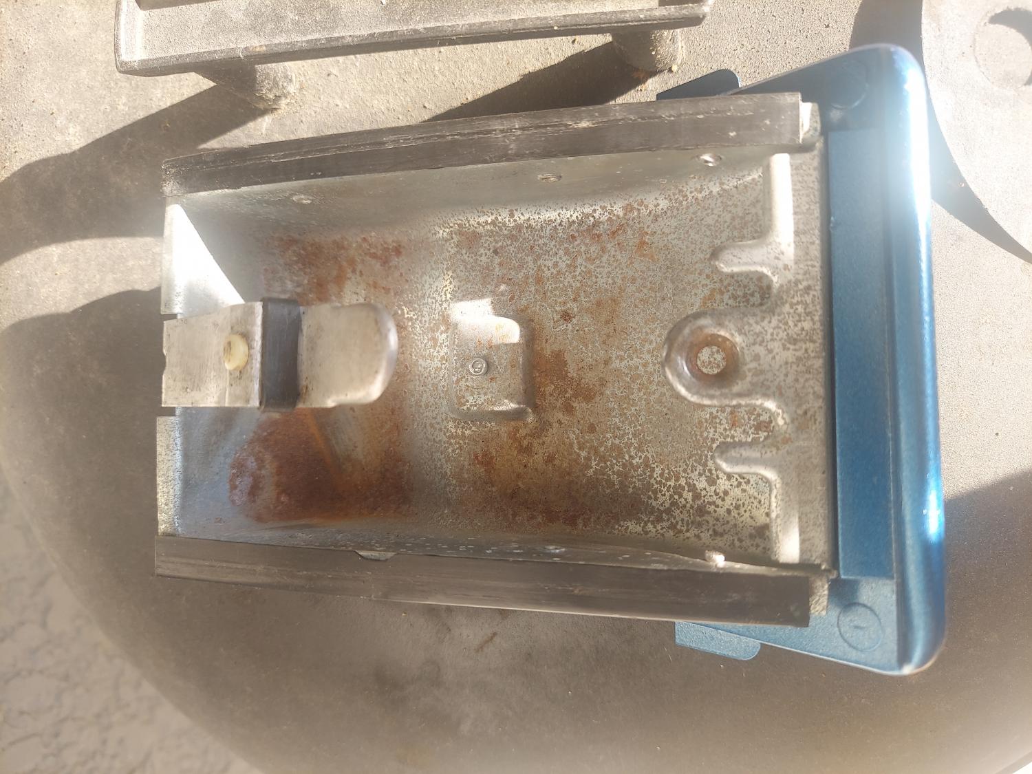 Designed for use when an 8 track player was installed. I did have to remove the plastic face and rivet it onto a nicer tray. I also beefed up the mounting ears with epoxy as there were stress cracks. It mounts as it should without any problems. Blue in color. I'll ship for free in the continental USA. $500.00 651 775 2777 call or text also. Thanks.