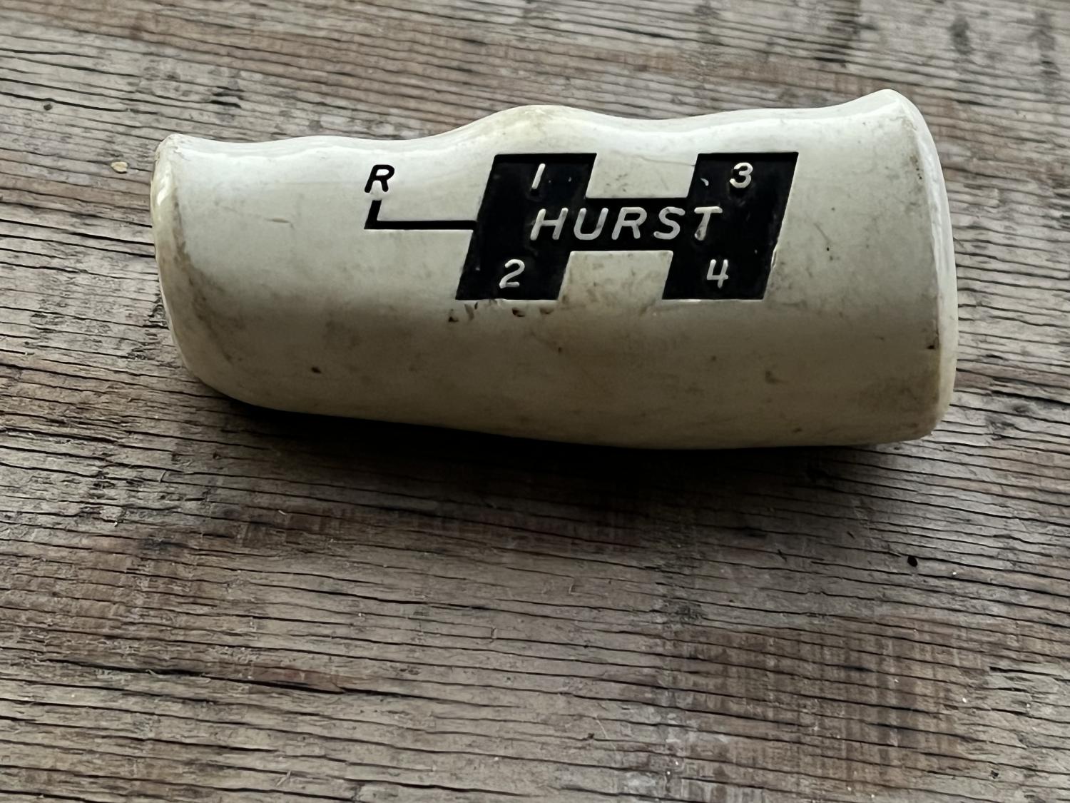 Hi Gang, an interesting and not often seen white plastic Hurst four speed T handle.