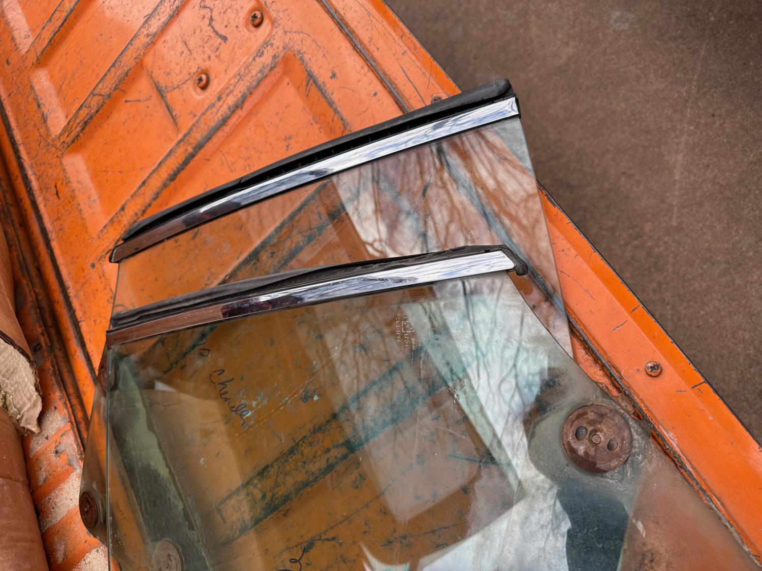 Very nice set of 1970 quarter glass and chrome that holds the weatherstrip. The chrome is very nice to be original and so is the glass 100.00 plus shipping