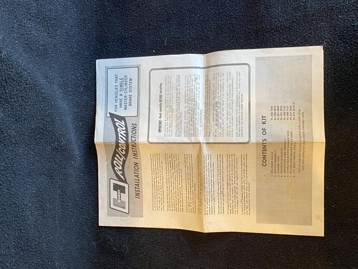 Old school Hurst Roll Control with Box. I bought this from a member a few years ago but decided to not install it on my car. I am unsure whether it works or not. Instructions dated 1968. I did apply 12 volts to the solenoid and didn’t hear any “click”. Not sure if it needs brake pressure to work. Seems to be complete except the fuse.