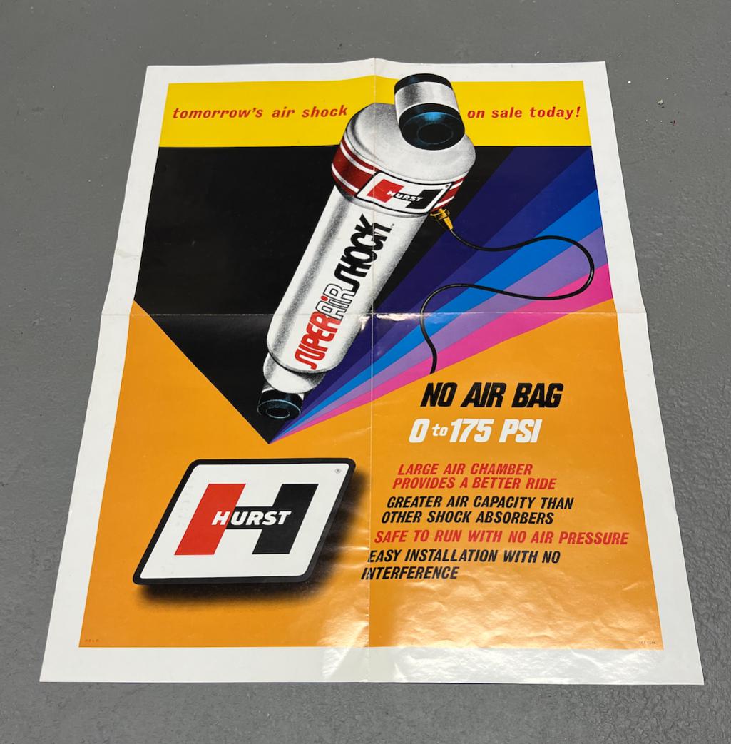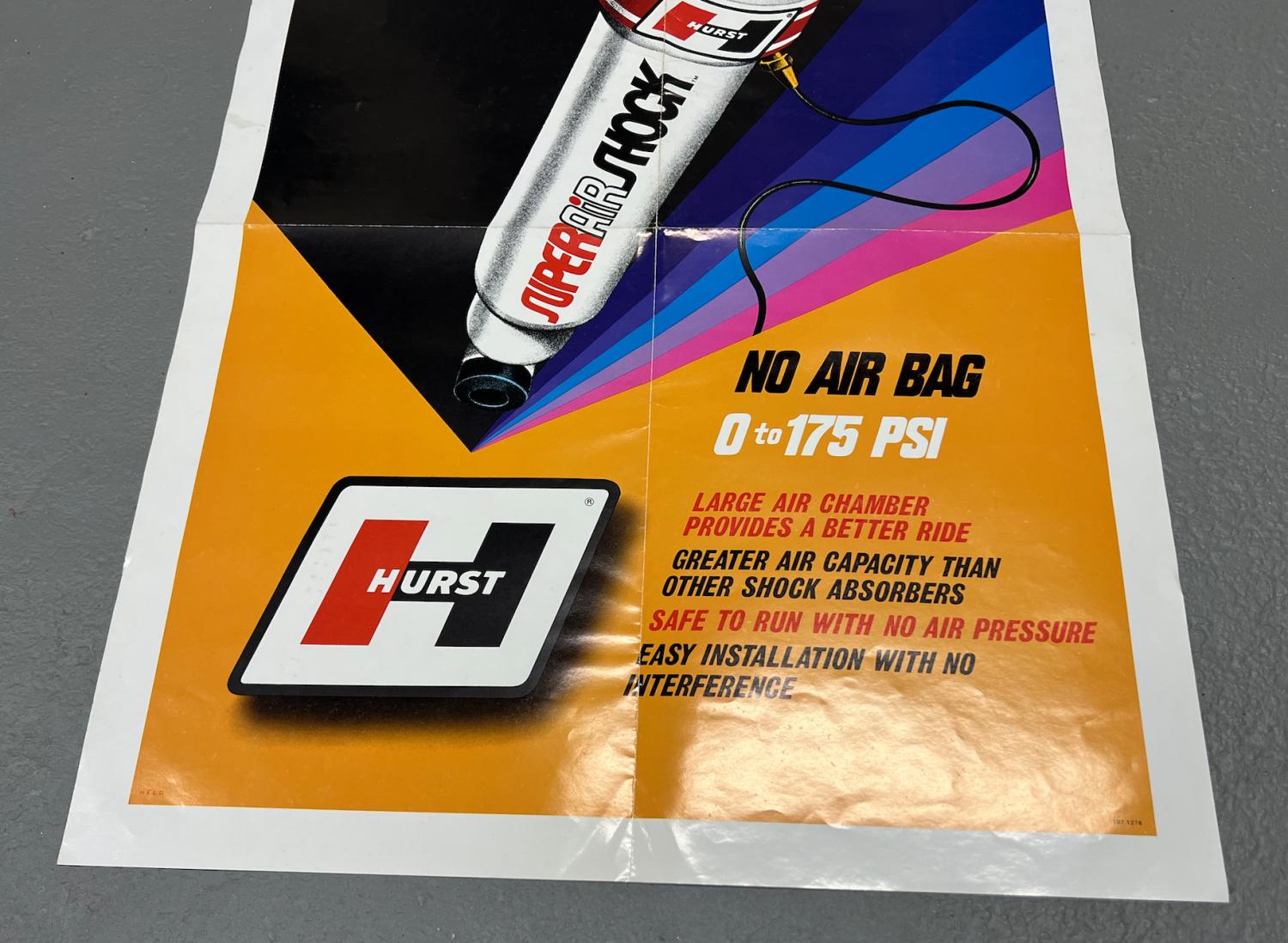 FS here is a near mint 1970's Hurst Air Shock Poster. 25x19. Authentic/original. These came folded from Hurst exactly as you see it. Great colors. Near mint. I've had this in my collection for years. Never seen another. Hurst advertising is some of my all time favorite. Never enough wall space right...