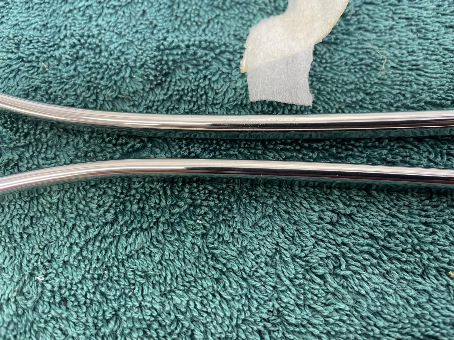 1 set is original - not restored - taken off and put on the shelf $75.00 shipped 1 set is NOS and lightly polished - $150.00 shipped