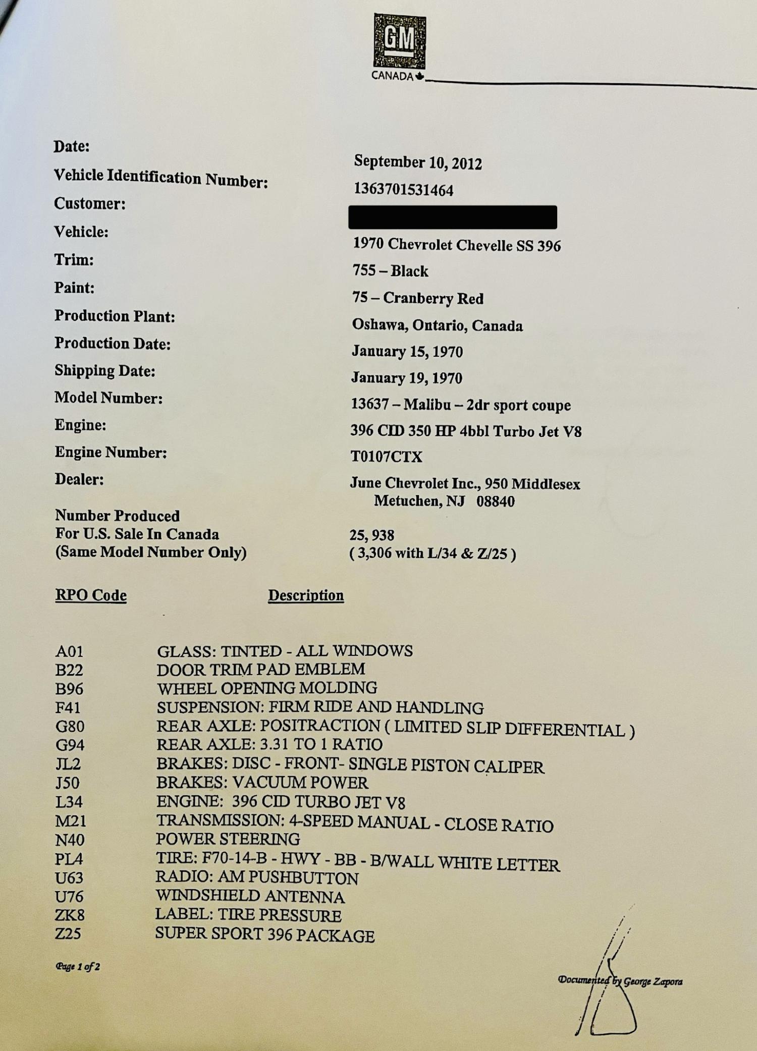 I had a 1970 Chevelle SS 396 (L34/M21) that was sold new from June Chevrolet in Metuchen, NJ. It was Canadian built so I had the selling dealer information on the VVS report.