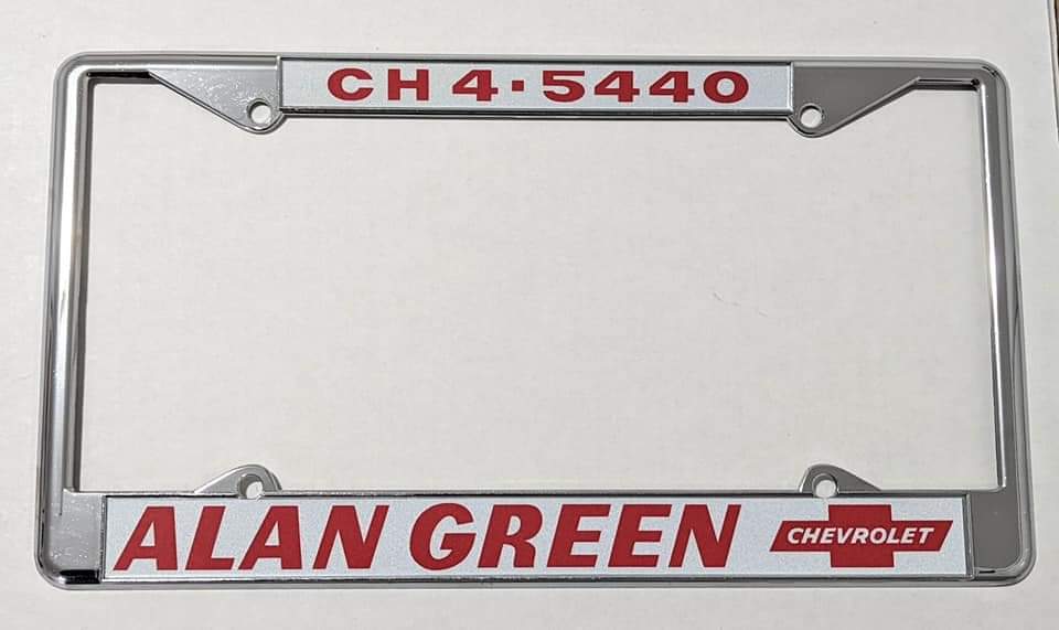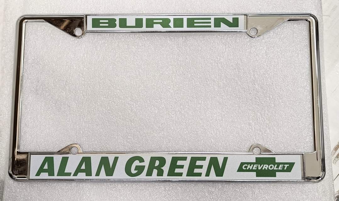 One of the Northwest's Premiere High Performance Chevrolet dealers, Alan Green Chevrolet. I have recreated these license plate frames & have all available in both 2 hole and 4 hole frame versions. $35 each + shipping If you are looking to have dealer or custom plate frames, license plates or decals made/recreated contact me. Here's a link to my page with some of the other frames, plates and decals I have done & have available: https://www.facebook.com/oldschoolplateframes/ |