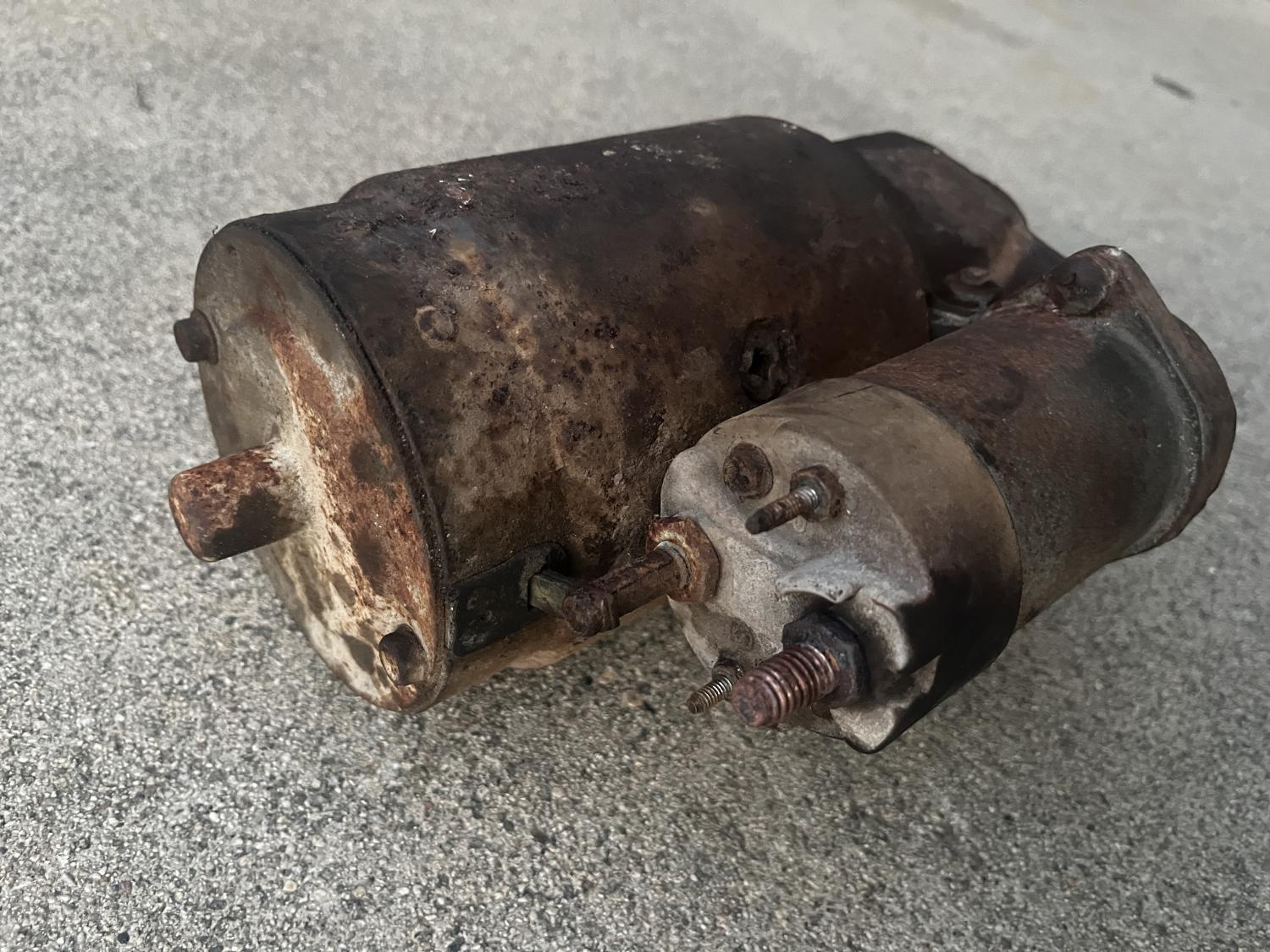 Hi Friends, I have a working 418 1108418 starter core available here - in VERY original condition and I witnessed it starting a BBC on a run stand less than 24 hours ago - it works, no doubt - perfect for an original car with 50 year old patina... I doubt it's ever been rebuilt. It has some pitting on the case as I've tried to show, but the stampings are clear and certainly original and a good candidate for a freshening up / going over. Only bad issue that I noticed upon removal was that the 491 cast nose cone is cracked, as shown - it's still attached and didn't affect it's operation, but I want you aware. you could probably pry it off with a breaker bar, but it was still attached and didn't come off upon removal.