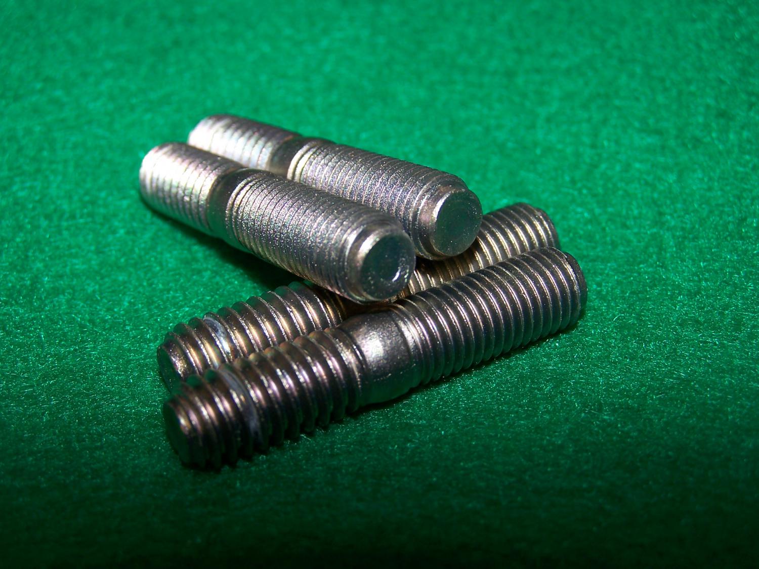 For Sale; Background, I removed my Original Studs from my 1968Z intake to send to a plater for refinishing only to have them LOST by the provider. So I reverse engineered the studs using a fine commercial starter stock. I machined (Lathe work) the Dog Point (Turned down Tip) as per Original samples then glass beaded and sent them off to a different zinc plater for ATSM B38 Zinc Type II yellow chromated, wire hung plating from the UNC end that installs into the Alum Intake female threaded hole and is hidden.