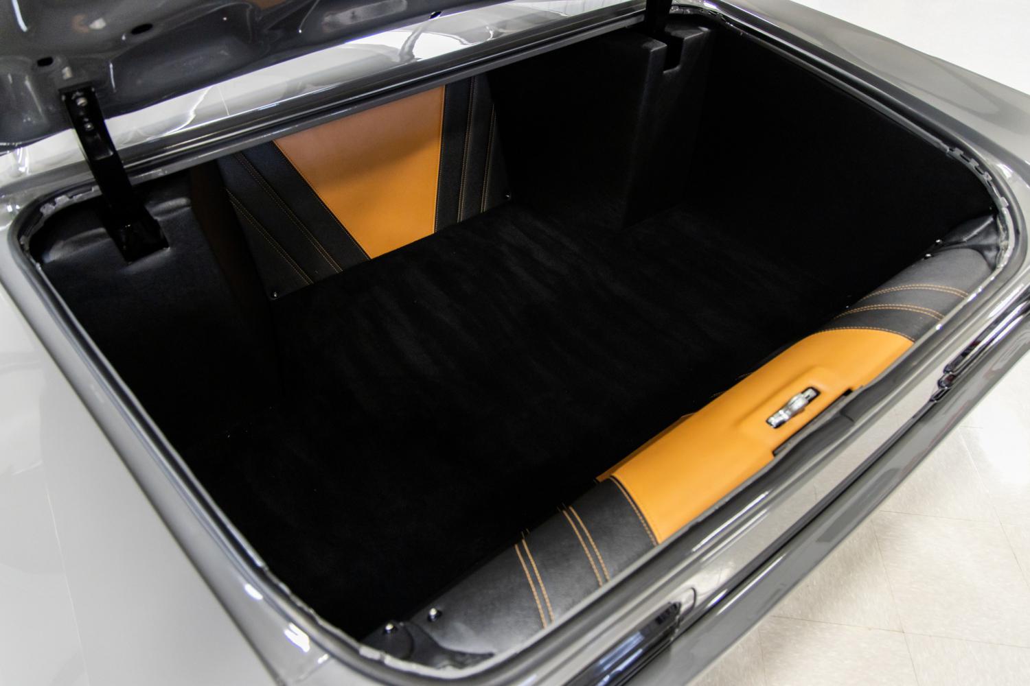 The exterior is absolutely stunning with its overall appearance and it's the center of attention wherever it goes. During the restoration body work process the factory drip rails, wiper holes and vents, mirrors, headlight buckets, door handles, key slots and emblems were shaved for a smooth finish. The headlight bucket trim, trunk lid trim and lower rocker trim was removed. It was also setup with a set of ABC Performance mini tubs to accommodate larger rear wheels. Countless hours were invested in making the body very straight. It was refinished in the modern color of Destroyer Gray which dresses it perfectly. The fresh paint was recently detailed to a high-gloss finish. The front and rear bumpers were smoothed, painted and tucked for a more modern appearance. All of the tinted glass was replaced new including the front and rear glass which was custom installed for a unique look. Some of the other custom features include Magical Racing carbon fiber mirrors, black trimmed grille and honeycomb insert, modern LED halo headlights and black trimmed LED rear taillights. The car has a killer stance on custom Forgeline AL300 wheels that have a bronze center and black lip. The front wheels are 19x9 and the rear wheels are 20x12. The front tires are Lexani LX Twenty 245-35-19 and the rear tires are Pirelli P-zero 325-35-20.