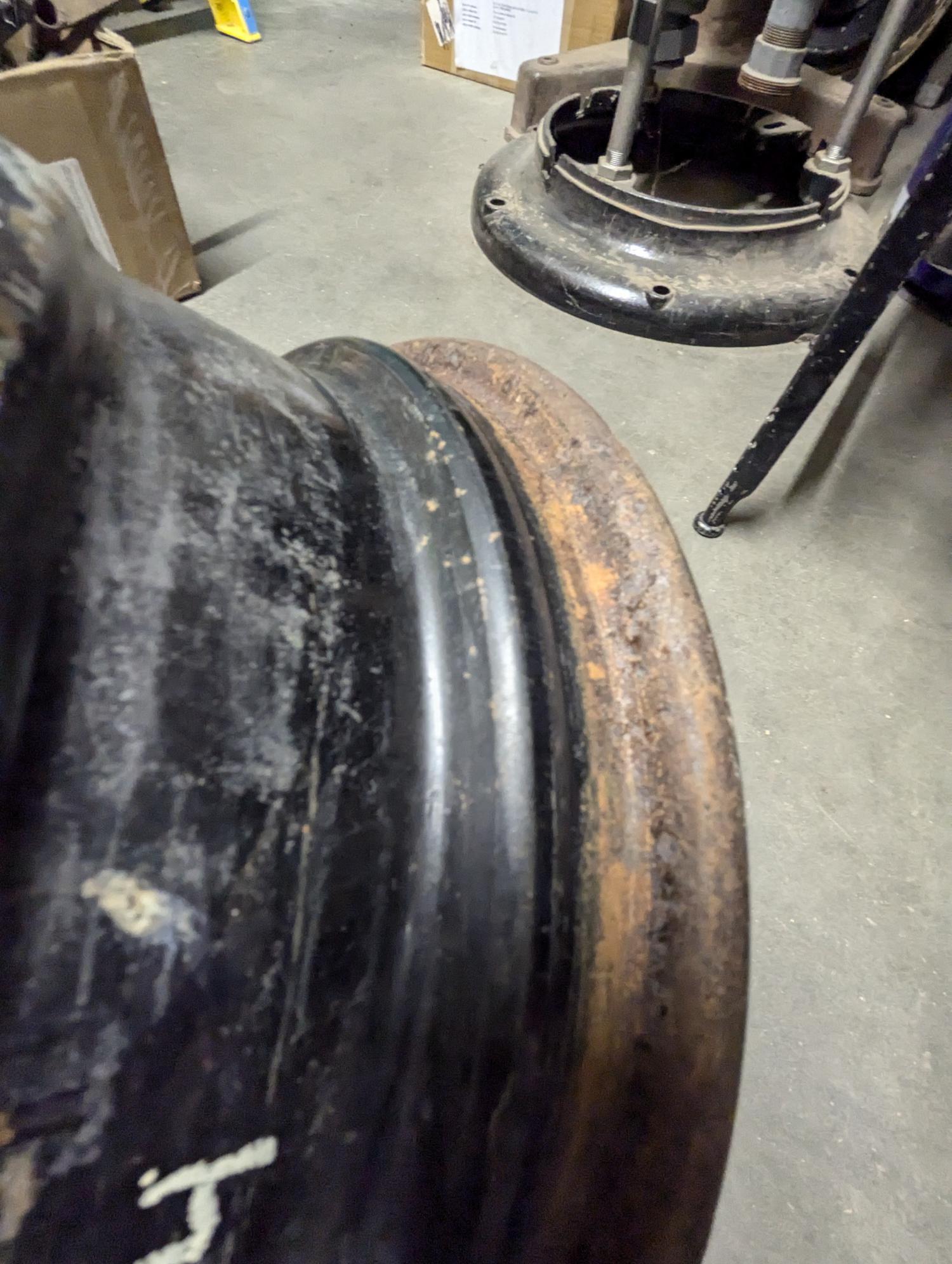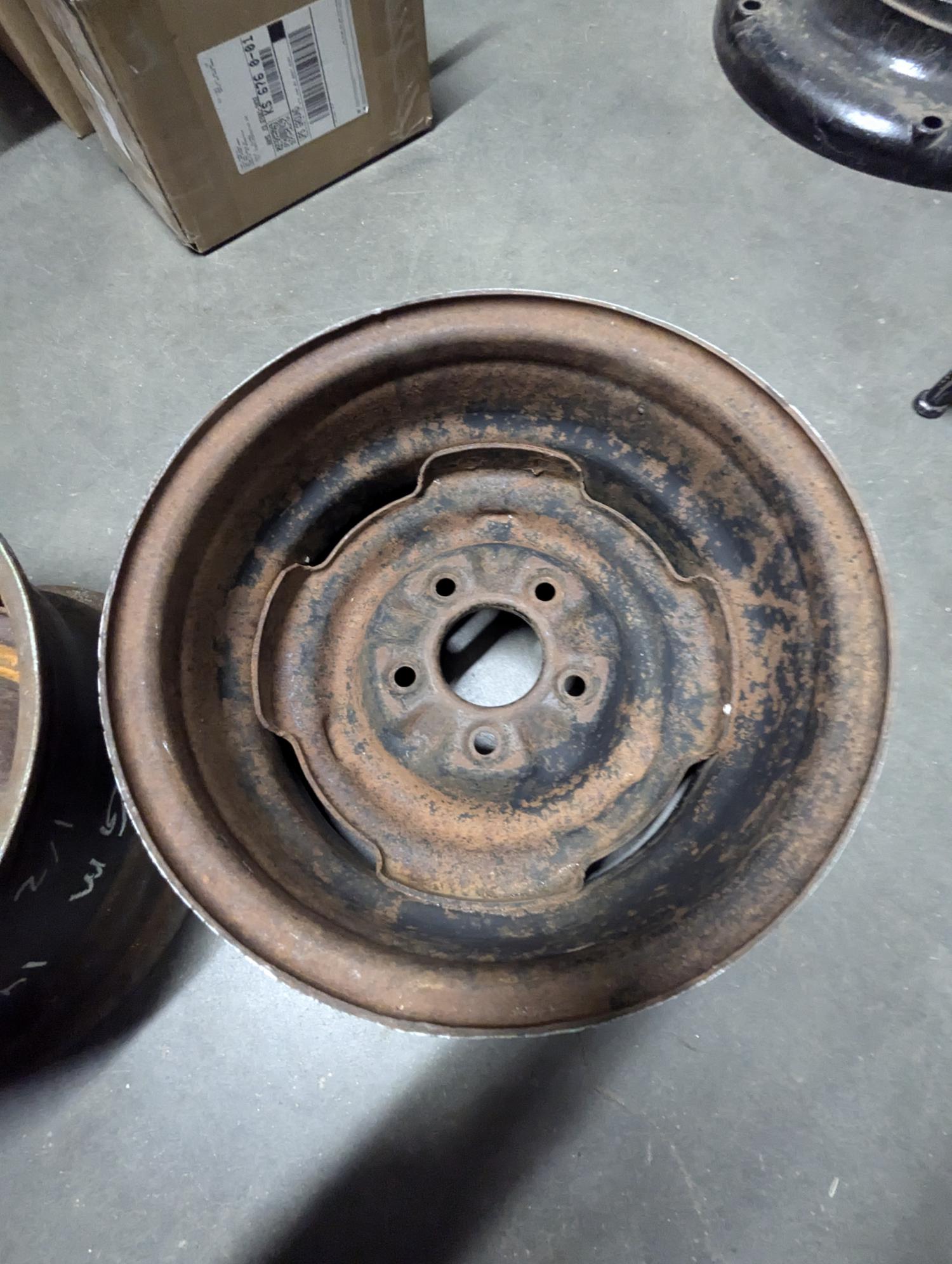 Original pair of date matched XT wheels. They are straight and all of the lug nut holes are good. One of them has some pitting in the beads. It's not horrible but will need some filler work once you blast them clean.