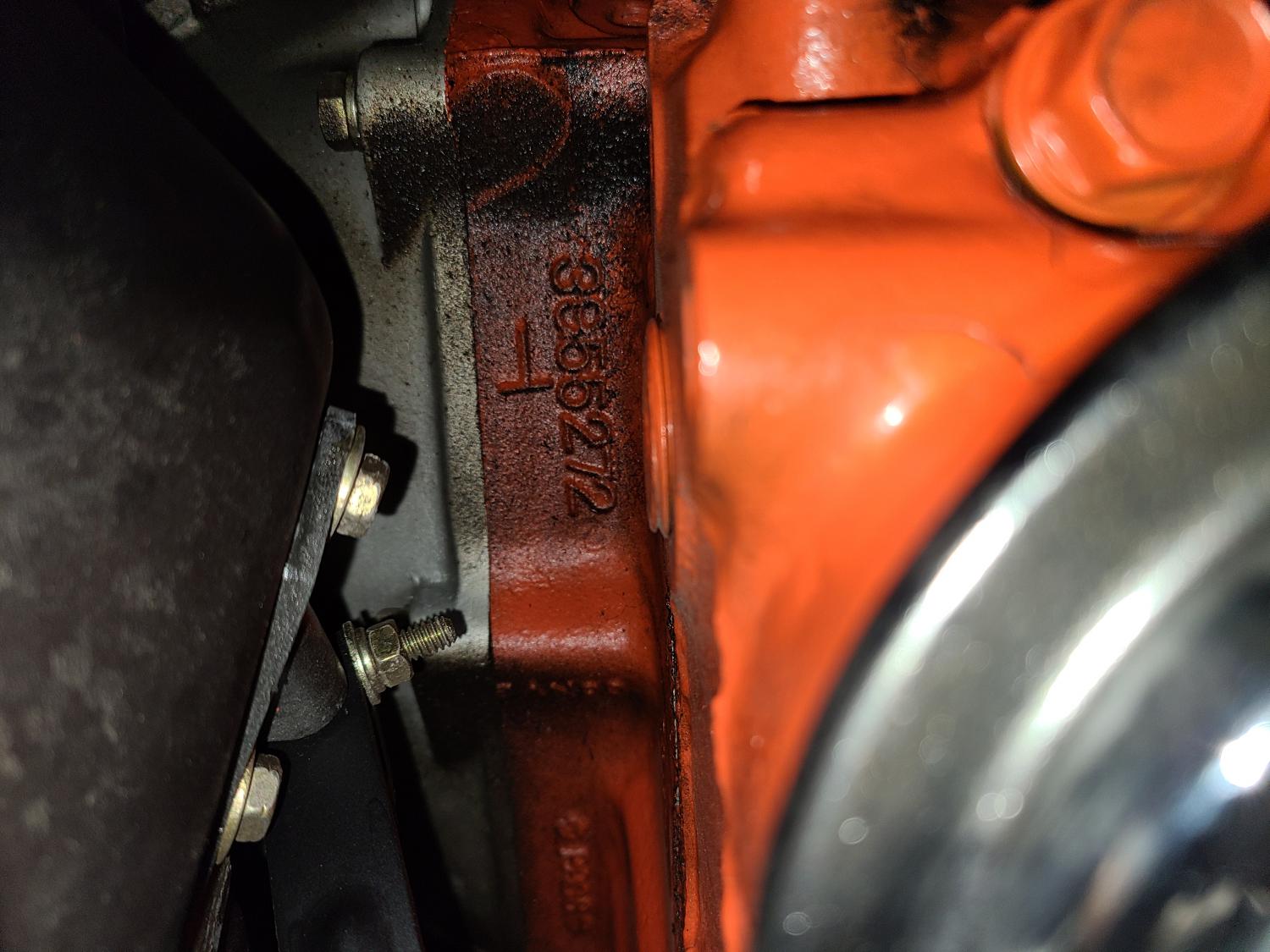 From all of my research (which isn't much in the grand scheme of you guys) everything you've said is right in line with everything I've read about too. I was fully expecting "JI" on the block and at first glance I thought it was JI but after cleaning the area some more and playing with different angles of lighting, it is definitely "T1106JM 19W353779". I will see if I can get a picture of it to turn out maybe tonight. I do have a picture that I took but I've doctored the picture so much to make the numbers standout that it really doesn't show an accurate depiction of what the stampings actually look like in person. The Turbo 350 had me scratching my head too for the same thoughts as you, why would someone "downgrade" from a Turbo 400. You know, you bring up an interesting thought. I have been fixated on the big block because everything (minus the transmission and the questionable A/C) adds up to a factory big block car in terms of the big fuel line, dual exhaust mounts in the rear subframe, 5 leaf leaf springs, 12 bolt, etc. I didn't think about it going the other way of possibly being a small block A/C car that someone stuffed a big block into. That might actually be what is going on here. I say that because, man there is absolutely no indications of the sheet metal on the dash or the firewall being "massaged" and or messed with in regards to someone adding factory air components to a car that didn't have A/C to begin with. I would think if the body didn't originally have A/C there would be some signs of modifying something even as minute as possibly elongating screw holes or an opening somewhere but there is nothing that remotely seems tampered with or and/or cut. I would love for someone who "knows" these cars to look it over because just the same, without documentation, it's still 50/50. |