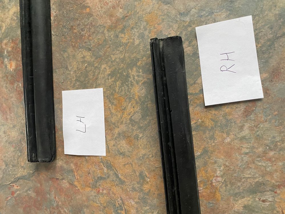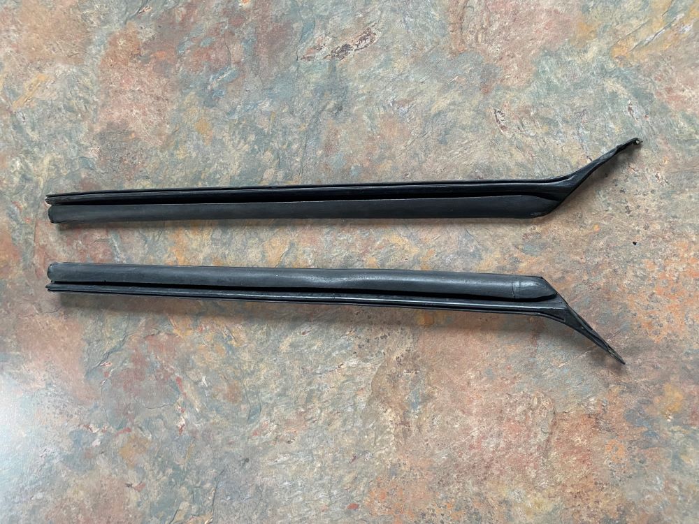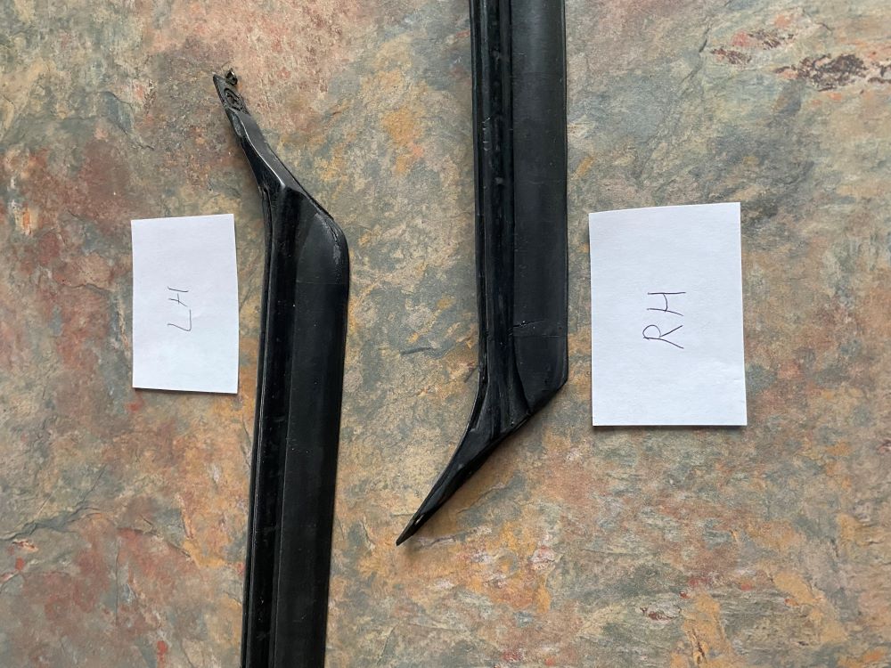 Originals that were removed from a 1969 Camaro 35 years ago and properly stored. Part #s 7707462 RH and 7707463 LH. They each have some splits that you can see in the pictures. Both are still pretty straight and pliable. I only cleaned them with plain water and a tooth brush. If you need more pictures let me know. $125.00/pr plus shipping. Paypal F and F please. Jim