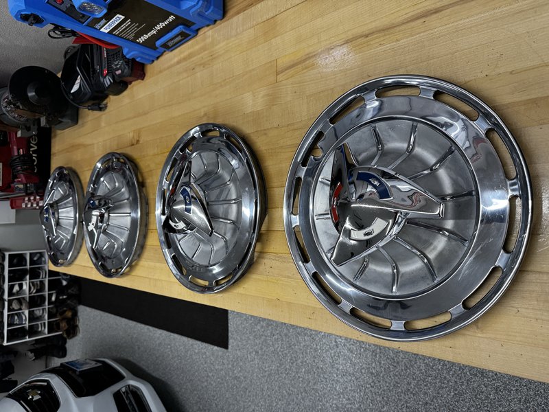 1962 Impala SS hubcaps. Set of 4. Not perfect - Survivor or driver condition. Light pitting on the spinners and the stainless has small imperfections. PayPal Friends and Family or Venmo. $275 OBO plus shipping.