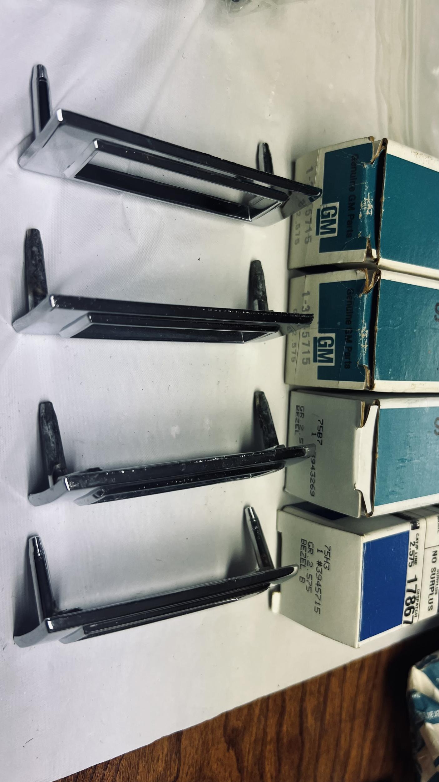 1969 Nos side marker lights and bezels. I only have 6 of the nuts for the bezels. See photos for part numbers. Too many to list. $525 shipped for all.