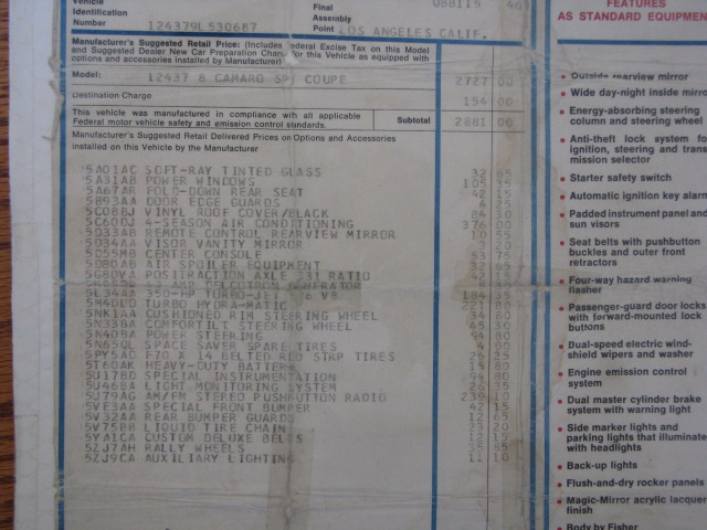 Second most loaded up Camaro with docs I have ever seen. Tried buying it back but was told it had been wrecked and towed.
