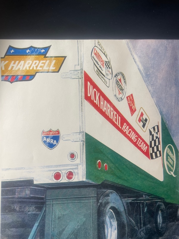 Way cool also weren’t some of Dick’s last racers Hemi powered? Here’s a few ads for Harrell built Chevrolets that would give the Cuda a go, hope the lad w/ the ‘68 L88 Nova made it home. ![]() ![]() ~ Pete .