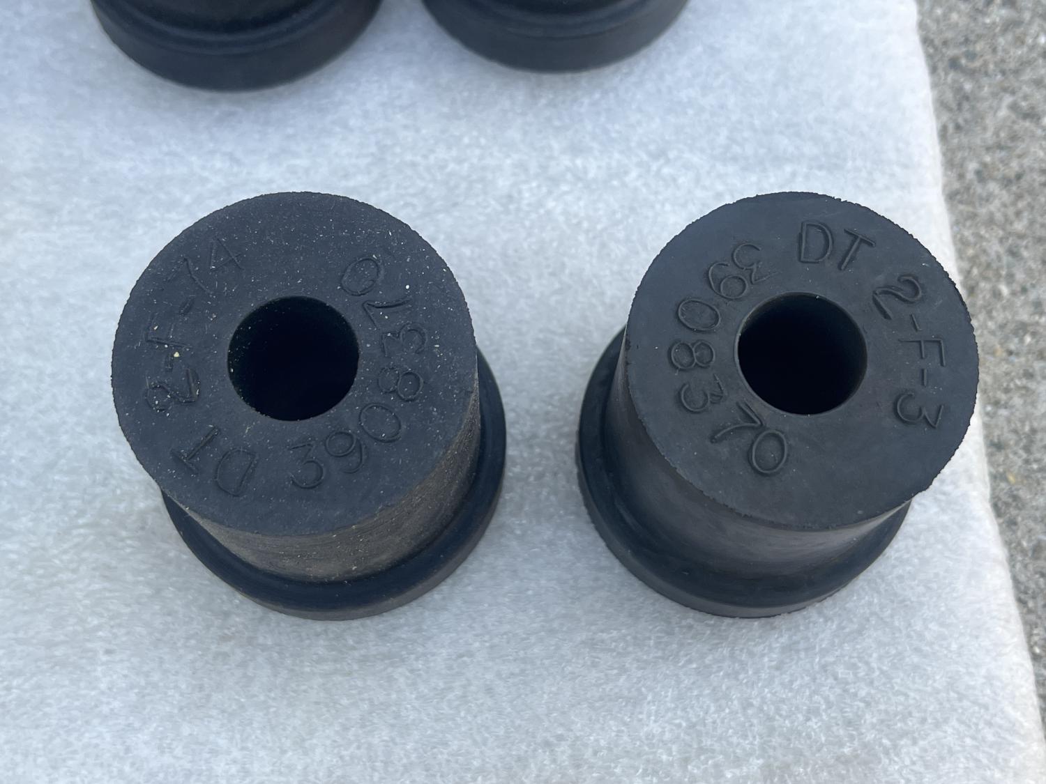 A FULL set of eight (8) rear NOS GM bushings for the rear spring shackles... With the older part number molded in of 3908370 which replaced 3790876. These are hard to come by anymore and repop / reproductions are of no comparison, IMHO. In the original parts bag with tag. These will also fit 1967 1968 Camaros & Novas as well as lots of other applications / models and literally millions of other cars. You want GM parts. GM parts fit. Many photos below for the whole picture. Cheers all, Anthony |