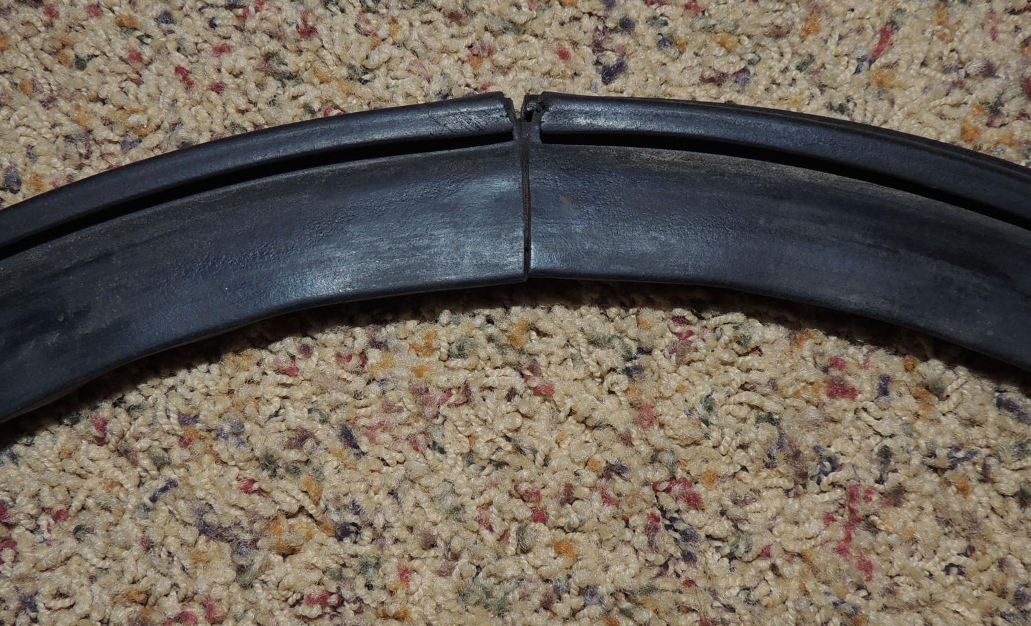 I does not have the tape on the joint. I do not believe it ever did. I know the NOS ones do, but don't know if assembly line seals came with the tape. The joint is still holding very well. The ring is soft and pliable. I put it back on for a while, but it just looked out of place with the rest of the air cleaner being restored. Because is was already broken in, FORTUNATELY, I did not glue it on. So, I installed an NOS seal. I kept this one tucked away because frankly, the NOS seal looked like chit when I first installed it. So, I thought I might have to put this one back on. Over the years the NOS one ended up conforming well, thanks to M22Mike's tutorial on installation, so that it now it looks perfect.