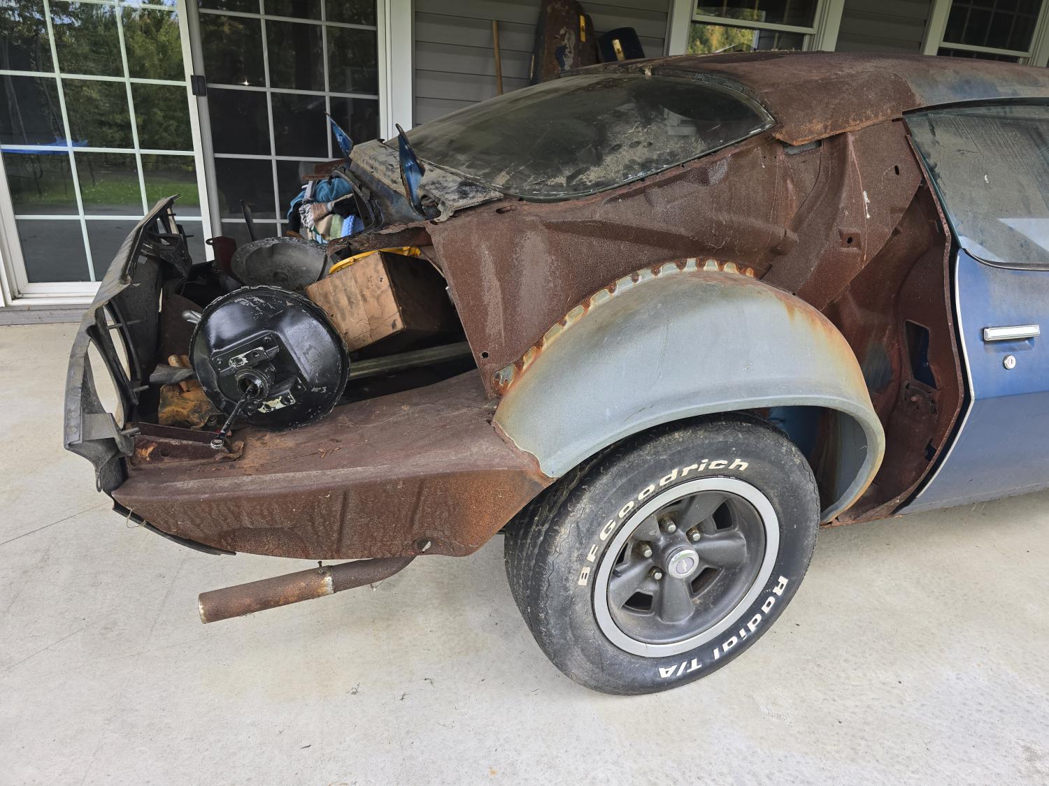 This car is a very complete original drivetrain car. Mulslane blue with black stripes. Black standard interior. It's a M40 automatic car with 4.10 rear. The original complete block and heads are with the car but not in it. It has spun rod bearings and removed from the car 30+ years ago. It will require at least 1 cylinder sleeved due to water got in it and pitted the cylinder wall. It has all the original pistons rods crank in it yet. Also will turn over by hand. The car does have a running 400 4 bolt in it now dressed in all the original components carb intake valve covers oil pan. Basically only parts missing from the engine bay is the smog system , TCS ,carb idle solenoid. 692 water pump,original,Fuel pump and a few hoses.It is very complete. I am a 2nd gen camaro legends judge and know these cars well and verified most everything is original and there with the car. It does have some rust in the car as many do. The quarter panels rear body panel outer wheel houses trunk drops were removed 25+ years ago to begin a restoration for it but but never finished. NOS Trunk drops are installed and outer wheel houses are partially installed. The rust in the car is repairable in the trunk. Rear rocker panel area. Lower front fenders. The roof has a lot of surface rust on it and appears ok. All the floors and cowl areas seem fine. I have NOS fenders quarter panels rear body panel trunk lid that come with the car. I want to tell more here but dont want to spend my day here describing the car. It is a very Good car to restore due to almost everything is with the car. There won't be a lot original parts chasing to restore it. Any questions please message me and I will give you my phone number and we can talk. My asking price is $26.5K for it. Thank you. I tried to load pictures here. But for some reason I couldn't load them. I can email pictures of anything for the car. Thanks again. Email address [email protected]