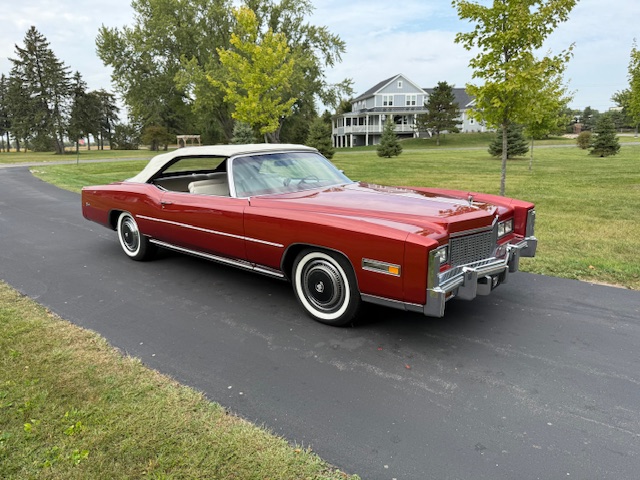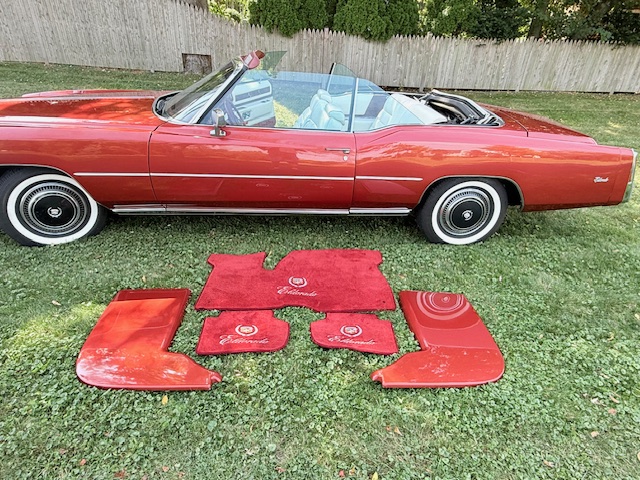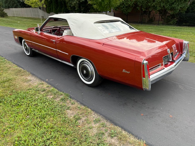 Firemist red, white interior and top. Purchased from an 82 year old man in Jupiter, FL. Numbers matching car. No rust anywhere. Frame has typical patina from the Floida climate. All fluids recently changed. Transmission service performed. Overhauled brakes including replacing hydro booster and master cylinder. Front end suspension inspected. Floor pans inside are mint. New sound deadening and new carpet. A/C converted to 134A. The windows and power top work well. Radio/8 track not working properly. Car was repainted at some point, but in very good condition.