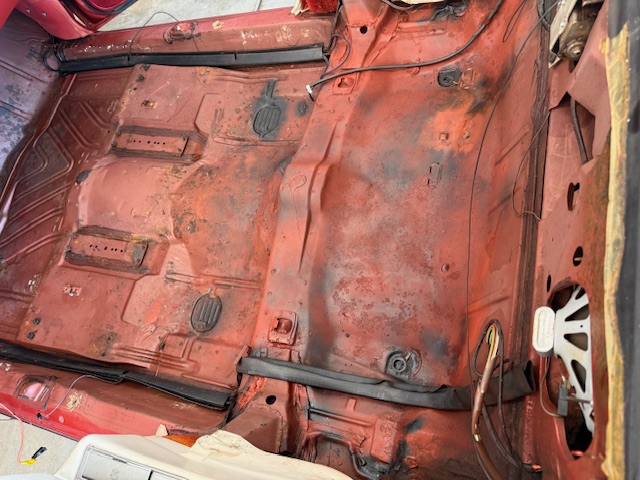 Firemist red, white interior and top. Purchased from an 82 year old man in Jupiter, FL. Numbers matching car. No rust anywhere. Frame has typical patina from the Floida climate. All fluids recently changed. Transmission service performed. Overhauled brakes including replacing hydro booster and master cylinder. Front end suspension inspected. Floor pans inside are mint. New sound deadening and new carpet. A/C converted to 134A. The windows and power top work well. Radio/8 track not working properly. Car was repainted at some point, but in very good condition.