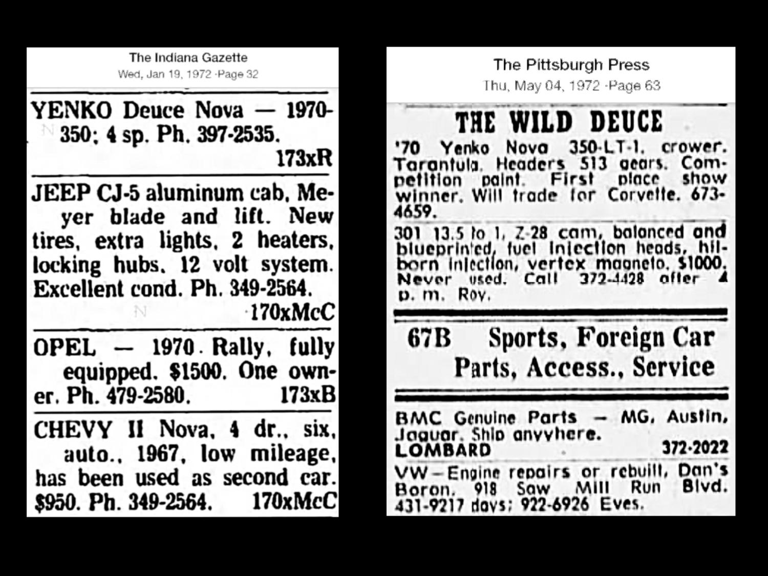 W W first posting also welcome aboard!Others can confirm but other than the 2x cars shipped to Canada, don’t all NCRS results for Copo 9010 cars come back Yenko, regardless of what Network Dealer sold it? If any help, here's a few Old Newspaper Ads I had saved for Deuces advertised in Michigan and Pennsylvania, all are private Ads other than the Stauffer one also 1’st Ad the only one from Michigan, others PA. Note dates/descriptions also phone #’s are all different but some may be the same cars? There’s more Ads in other old threads here also let us know if you need any help back-tracking leads you may find. Best of luck w/ your Deuce also its history search! ![]() ~ Pete .