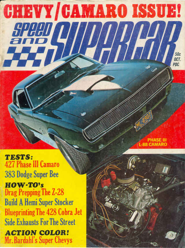 Exclusive Coverage Converting a Vette into a B/Gasser Ramming Holley's Three-Barrel Carb Supercar Road Tests Dodge's 383 Sensible Super Bee Chevy's Phase III SS-427 Camaro Bonus Color Spectacular Mr.Bardahl's Chevy Stockers Performance How-To's Blueprinting the 428 Cobra-Jet Build a S/S Hemi Plymouth Side Pipes for the Camaro & Vette Weber Varoom for the VW Street/Strip Specials The Number One Team Stardust Charger Fueler Super Swift Southern Super Show-Biz Supercar Dodge Stocker Roundup Departments Supercar Scene pretty cool... shows how to install the Corvette sidepipes on the 1st-gen Camaro.