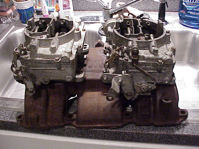 1965 425 INTAKE AND CARBS THIS SET UP WILL NEED A RESTO THE PRIMARY BARB IS STUCK THE FRONT IS FREE AND OPERATES WITH EASE, I ALSO HAVE A 427 FORD MEDIUM RISOR INTAKE ON AS ALWAYS I WILL SHIP TO MEMBERS OF THIS BOARD FOR FREE!!! THATS A DISCOUNT WITH THE SIZE AND WEIGHT OF THESE PARTS.JUST ANOTHER ADVANTAGE TO BEING A PAID MEMBER,