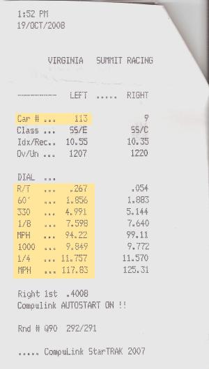 Neat time slip. How far the cars have come in such a short time. It's just amazing the ET's. The 2nd half of the time slips are just unreal. The question is where will it stop? I think that is a $ and cents question.
