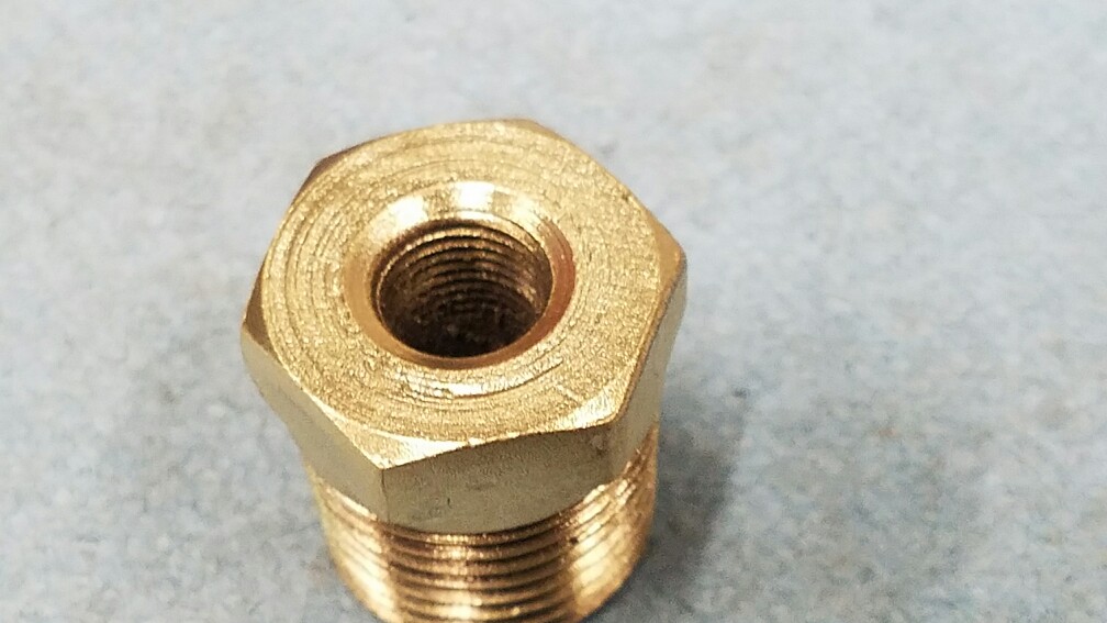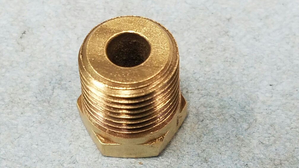 65 66 67 -mid 68 396 427 4 bolt main brass oil line to block fitting. Extremely nice original Weatherhead stamped peace. With the original Machining marks on the surface in circles. About as nice as you're going to find. $75. Ppff (X)